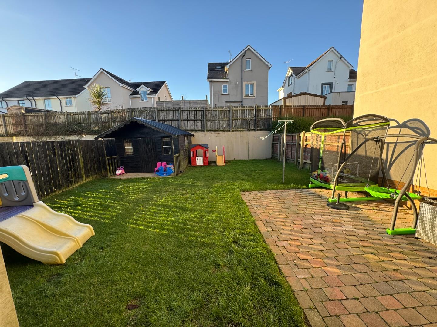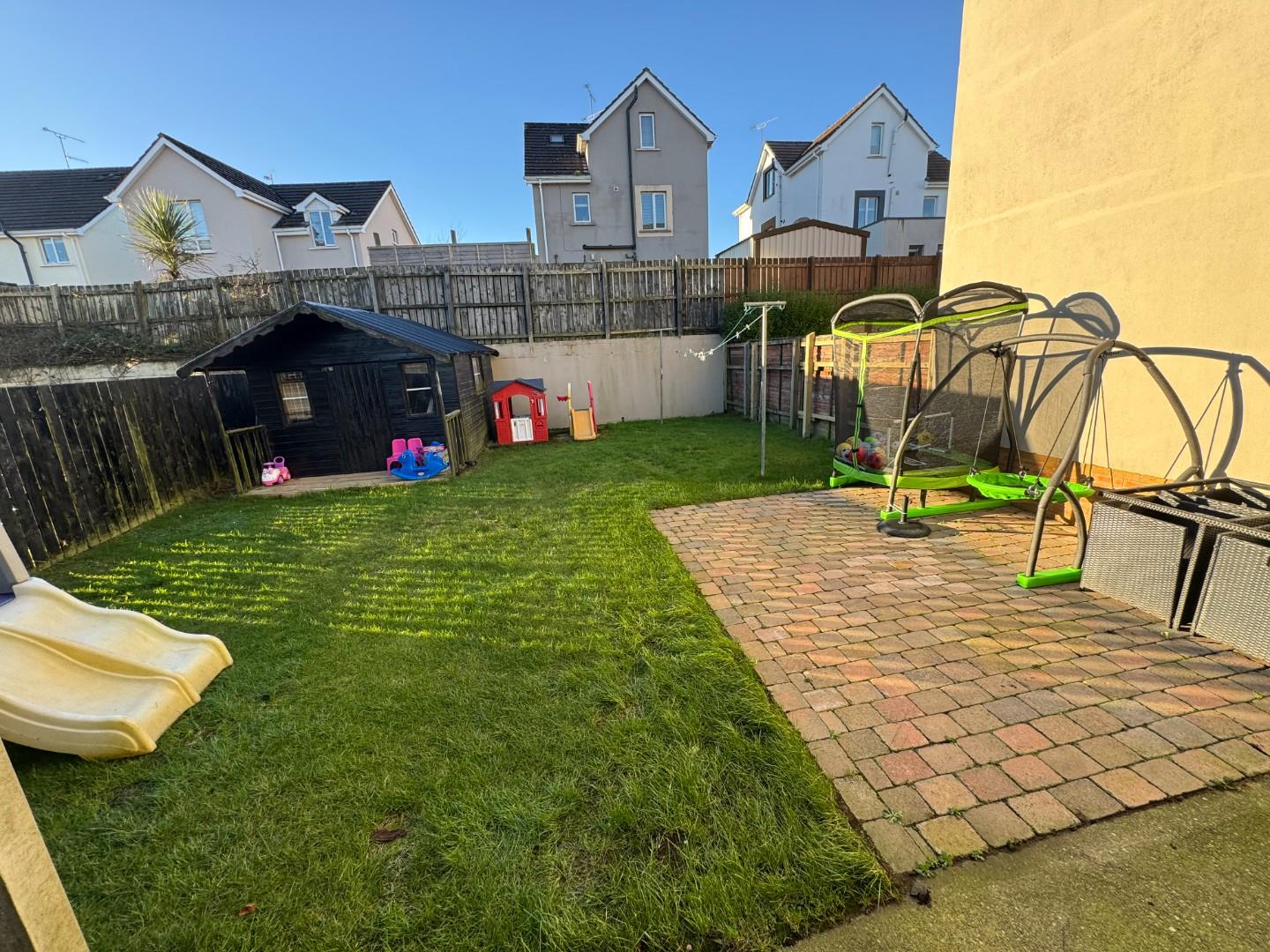 The rear garden has a patio area and lawn fully enclosed with a garden shed also, ideal for children or pets. The front garden is laid in lawn and has a drive way for 2 cars.