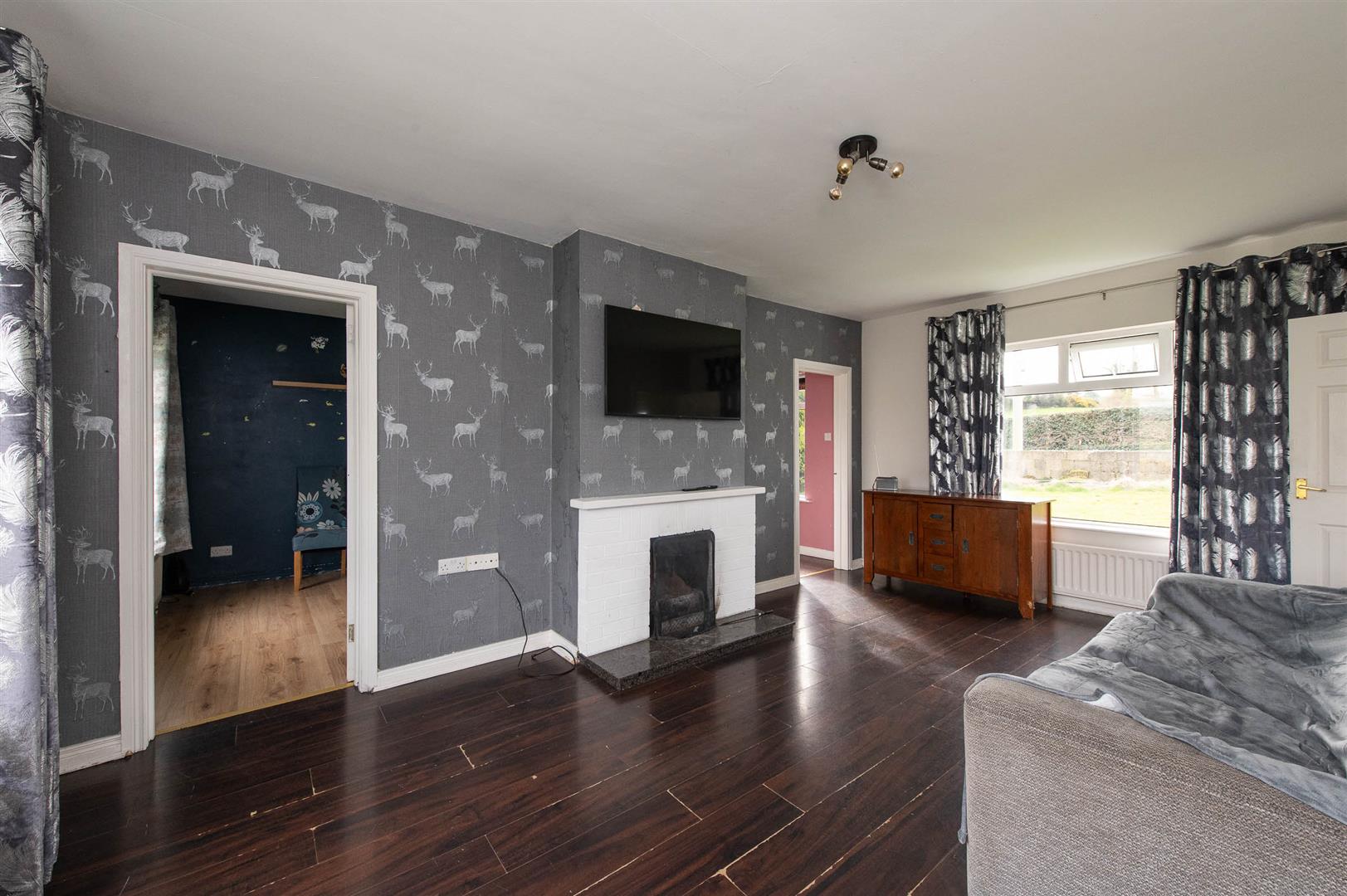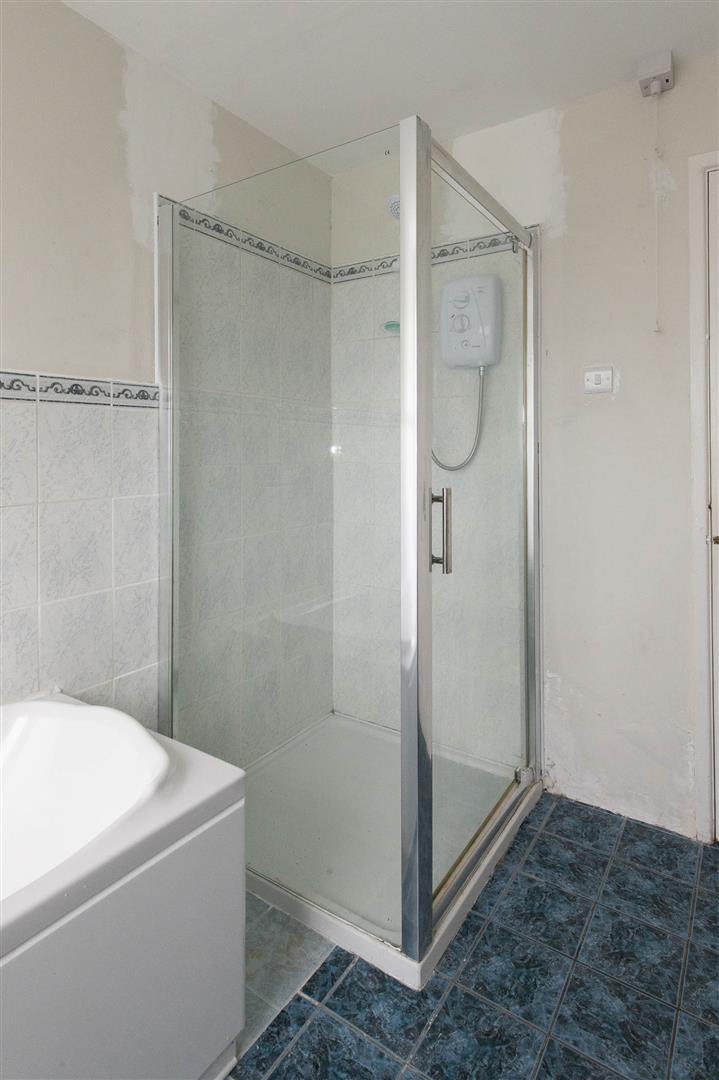 The property has a tiled entrance hallway with access to Living room, Bedroom, Kitchen and Bathroom. The Living room is a bright spacious room with open fire, dual aspect windows with laminate flooring. Open plan Kitchen/Dining room with tiled floor, comprising fitted Kitchen to include space for washing machine, fridge freezer & dishwasher with integrated hob & oven. Double sliding patio doors accessing garden. Bathroom has a fully tiled floor with partly tiled walls comprising Bath, W.C, Wash hand basin & shower cubicle. Three reasonably sized bedrooms, one accessed from main entrance hallway with carpet laid and two others of Living room with laminate flooring.