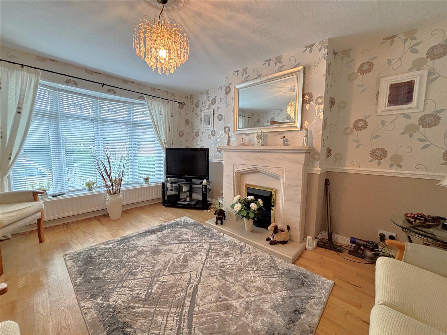 Attractive marble fireplace, solid oak flooring, double panelled radiator, cornice ceiling.