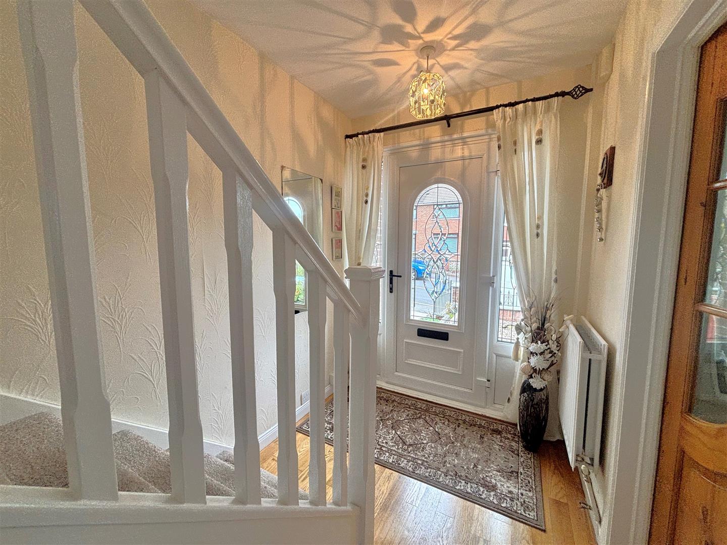 Upvc double glazed entrance door, solid oak flooring, double panelled radiator, wall mounted gas boiler.