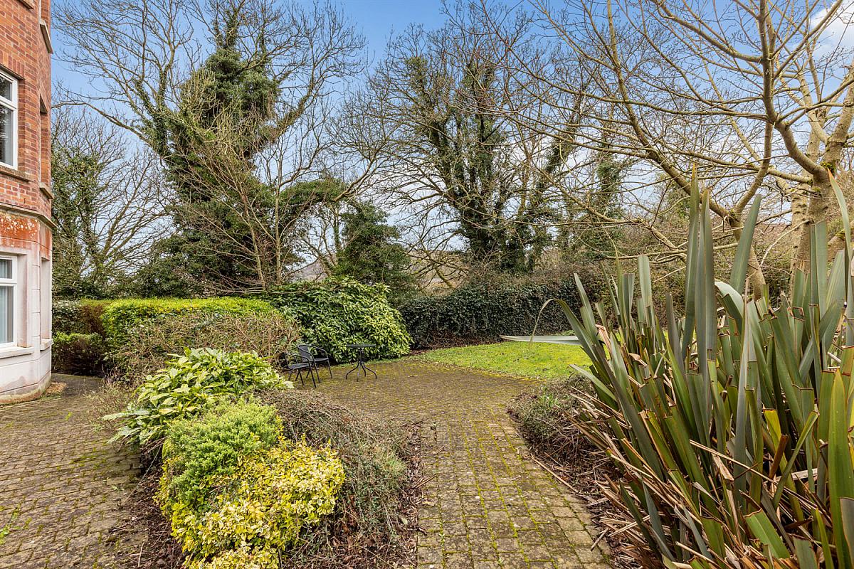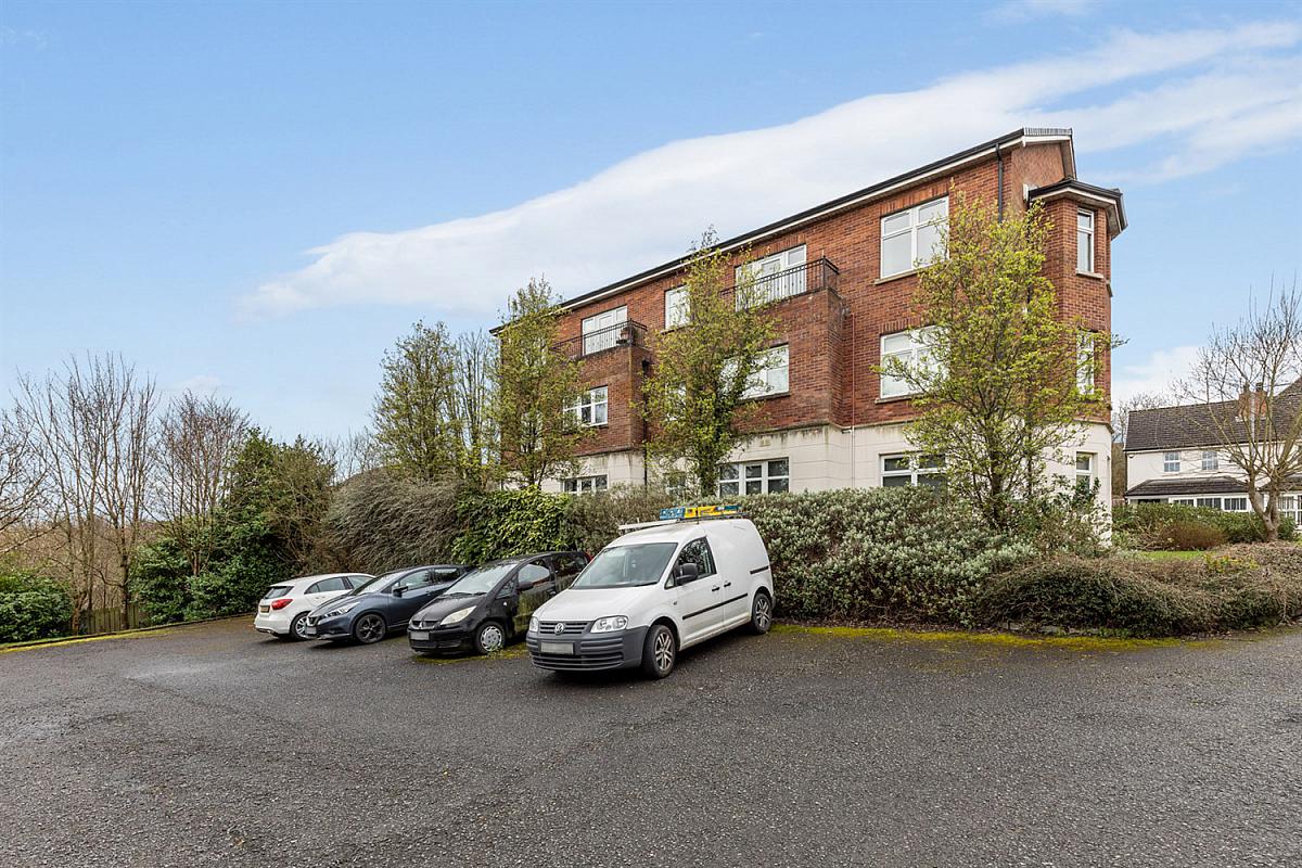 Externally, the apartment enjoys a private balcony with attractive panoramic views, as well as access to a communal garden landscaped with lawns, mature trees, shrubs, and a patio seating area. Ample communal parking is also available.