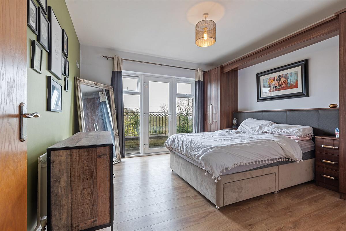 Built in furniture including wardrobes and beside units. Oak wood strip floor. PVC glazed door to balcony.