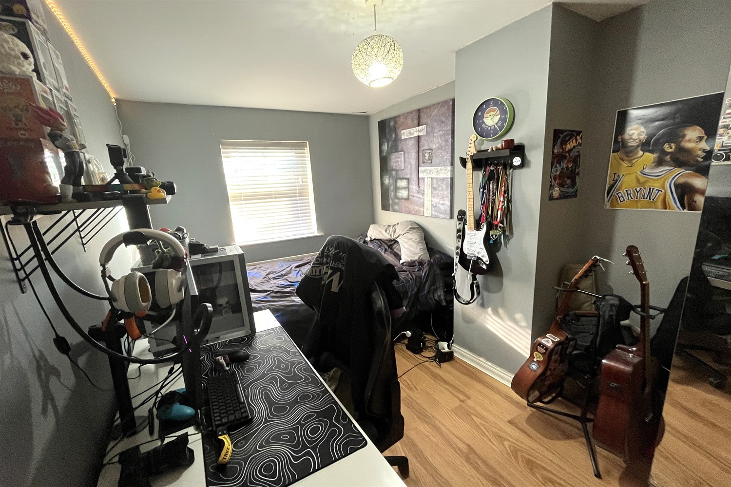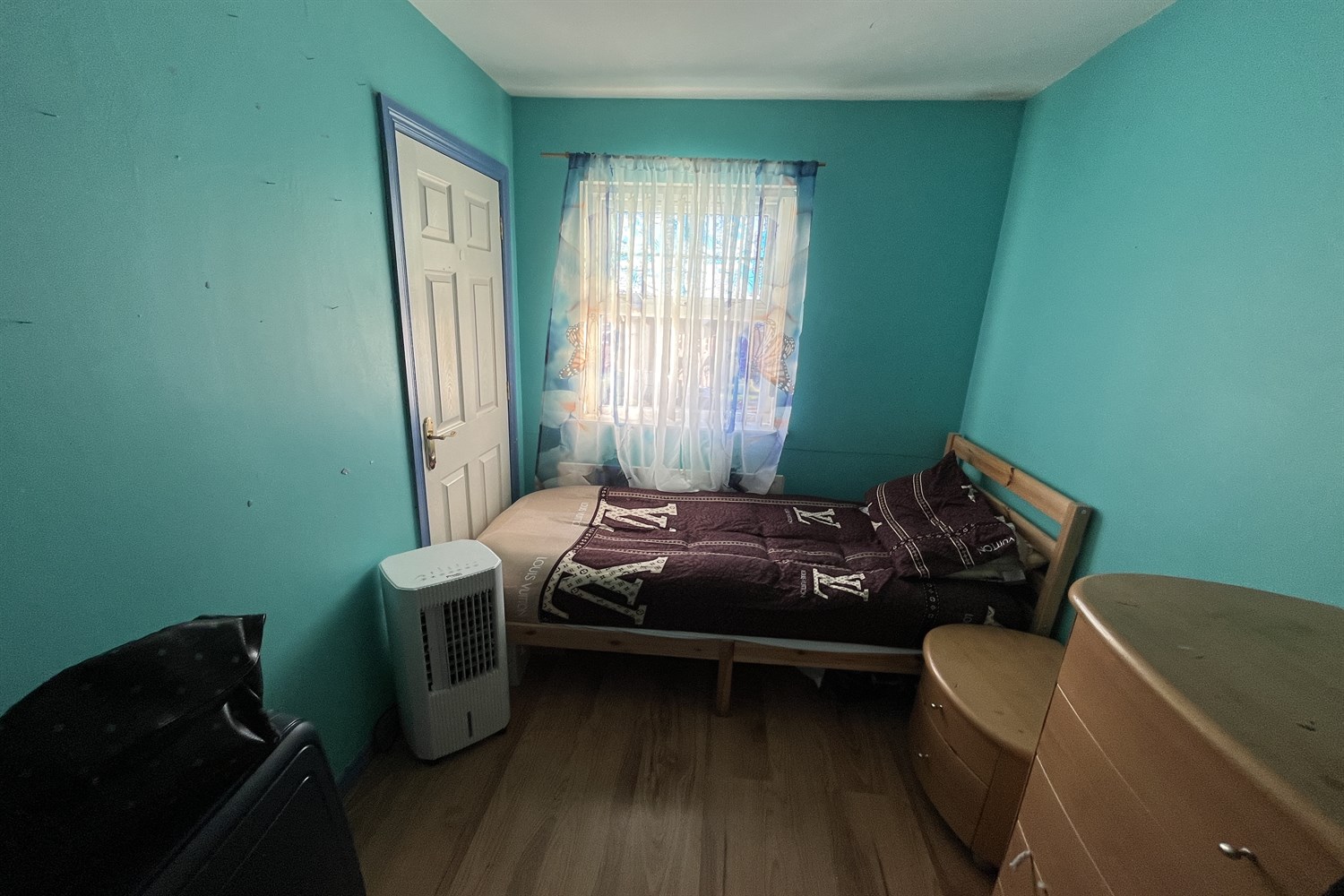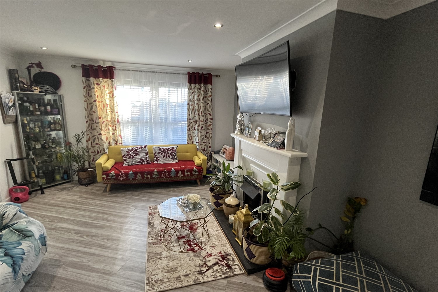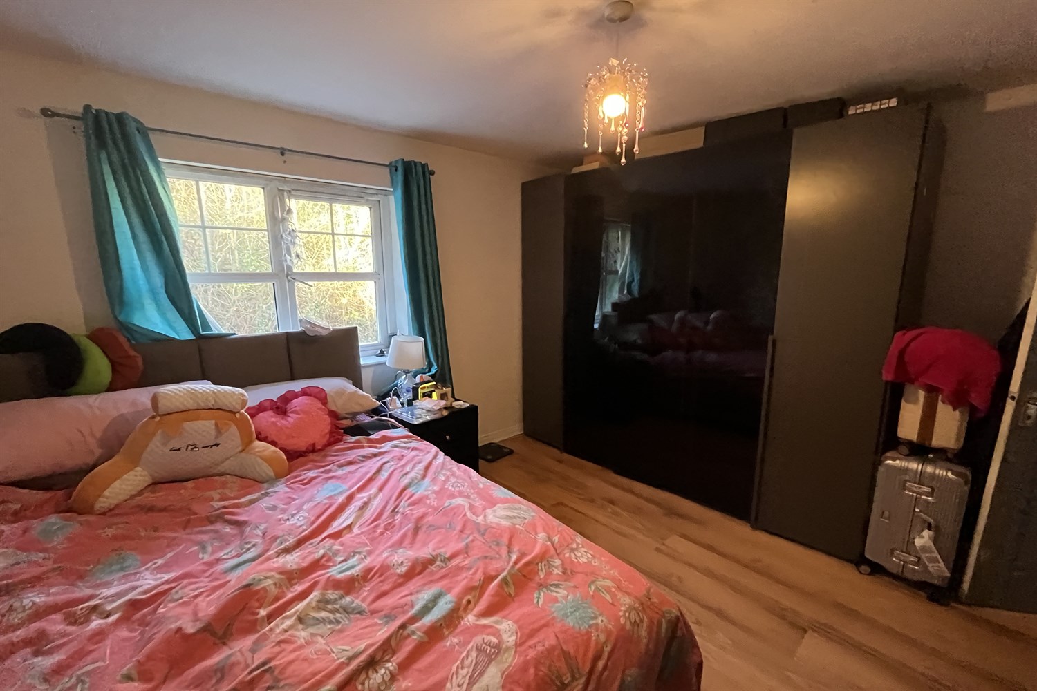 Laminated timber flooring, single panelled radiator.