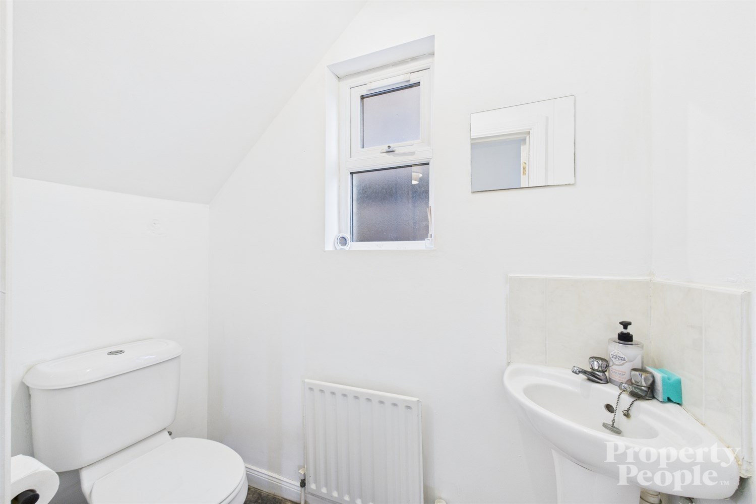 Downstairs WC comprising a low flush WC and space saver corner sink unit.