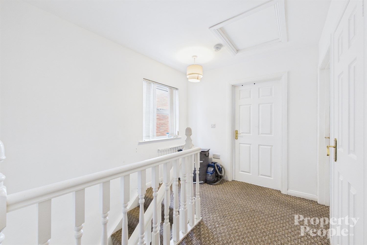 Carpeted stairs to an airy landing providing access to your hot press / walk in storage cupboard and attic space.