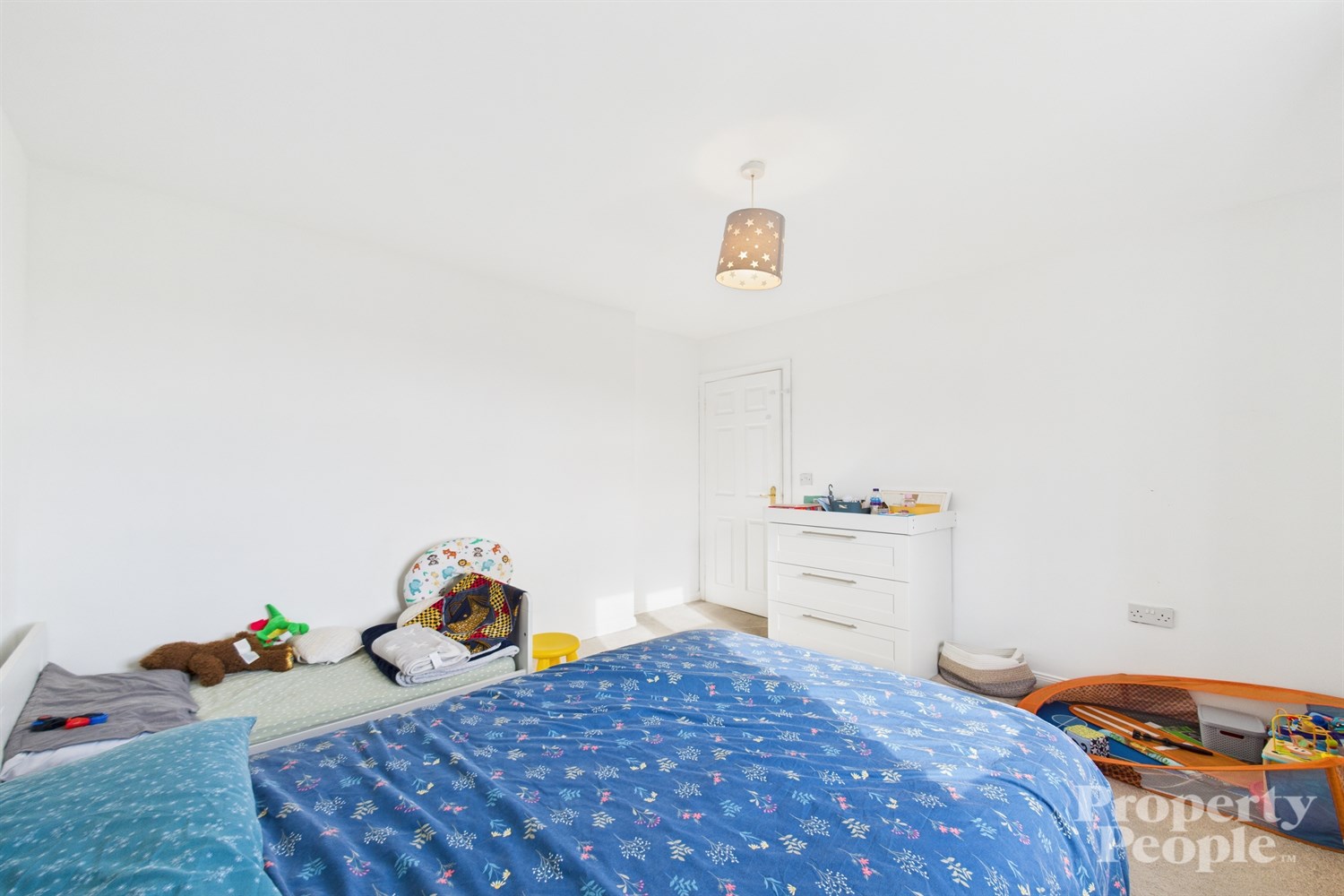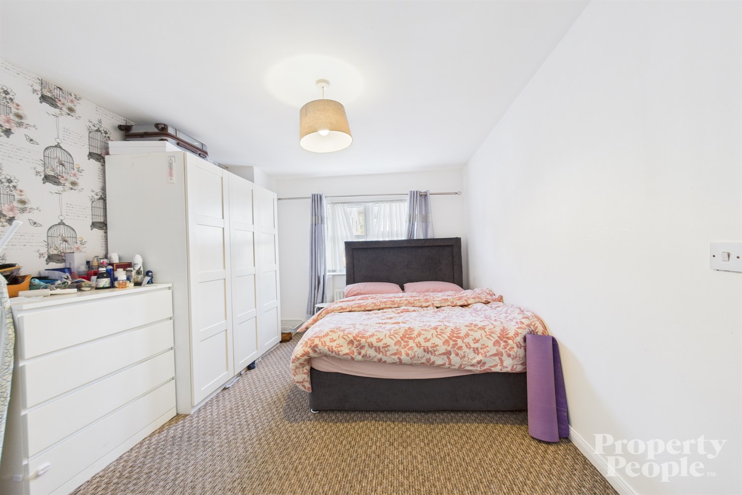 Bright and spacious master bedroom with front view aspect to garden and driveway, carpet flooring and double panel radiator.