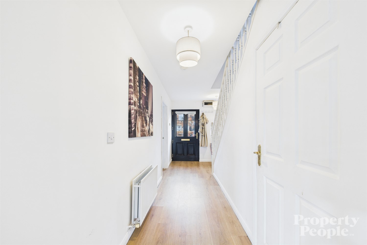 Bright and welcoming front entrance with uPVC glazed front door to hall with laminate wooden floor and panelled radiator.