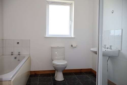 Ground Floor Toilet :White 2 Piece suite comprising pedestal wash hand basin and low flush w.c. Tiled floor.