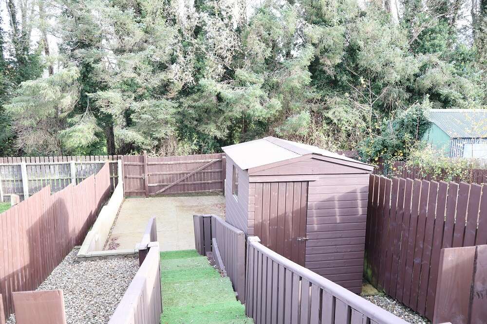 Small, low maintenance front garden with laneway to side of terrace row leading to rear of property which allows for off street parking. Pedestrian access from front of house to rear yard. Rear garden with parking space enclosed by timber fence and gates. New condensing boiler. PVC oil tank. Outside lights and water tap. Garden Shed: 8'0 x 6'0.