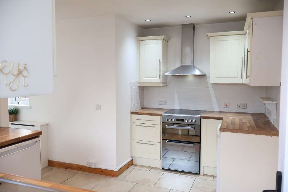 12'6 x 9'6 Excellent range of Contemporary units with matching worktops. Stainless steel sink unit and single drainer with chrome mixer taps. Part tiled walls. Natural Stone tiled floor. Recessed lights to ceiling. Fridgemaster Freezer. Indesit washing machine. New BEKO cooker with stainless steel canopy housing concealed extractor fan. HOOVER fridge. uPVC rear door with double glazed centre light