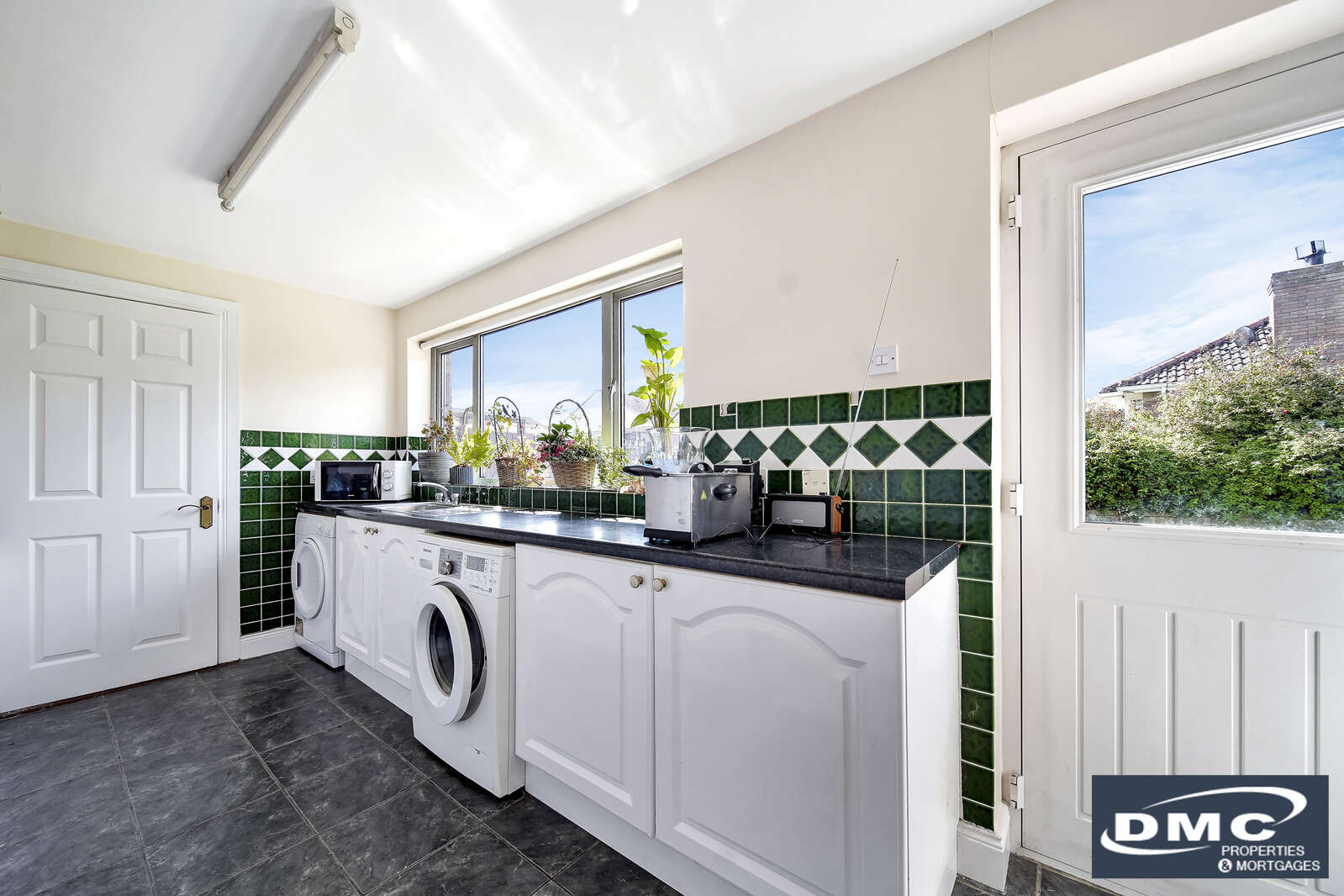 Utility Room :14'10 x 5'6 Good range of High gloss base units with matching worktops. Stainless steel single drainer sink unit with mixer taps. Part tiled walls. Tiled floor. Plumbed for washing machine. Doorway leading into Integral Garage. Cloakroom / Store - housing oil fired boiler. Upvc rear door with double glazed centre light.