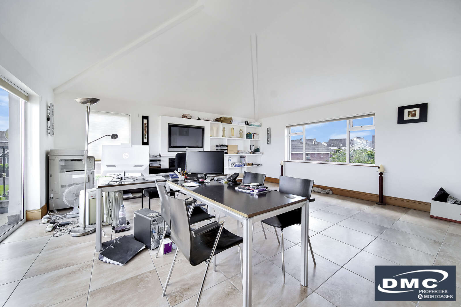 Lounge :/ Office / Games Room / Bedroom [5] - 18'4 x 15'0 Housing electric fire , television and open shelving , polished tiled floor. High vaulted ceiling. Upvc patio doors leading out unto balcony enjoying superb views over Lough Foyle towards the Donegal Hills.