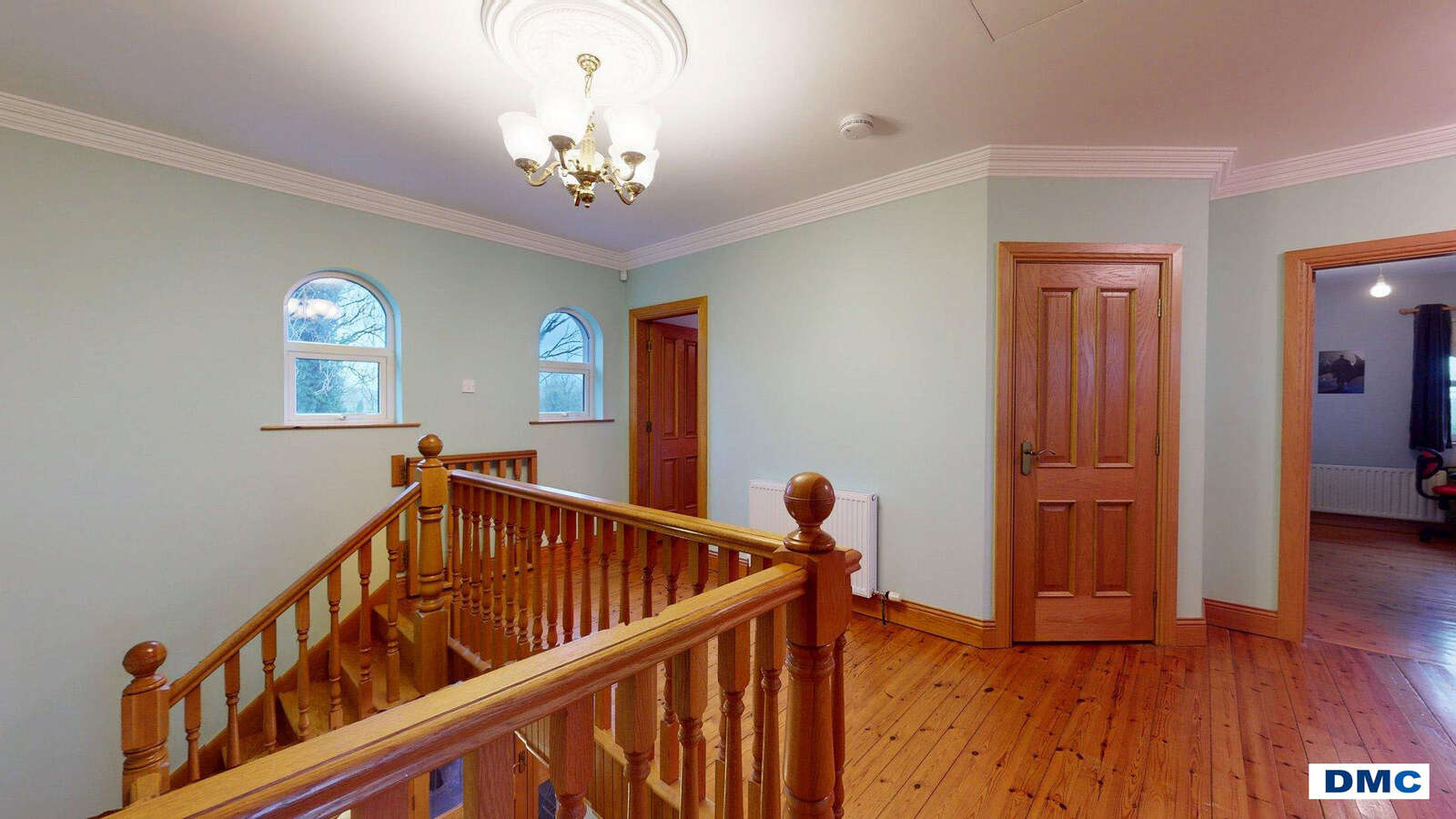 Feature Oak staircase. Redwood floor. High ceiling with cornicing and centre rose. Shelved Hotpress.