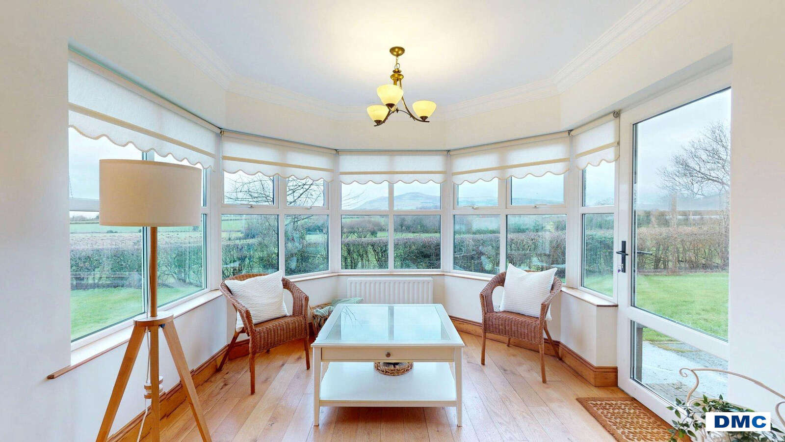 9'8 x 9'4 Solid Natural Oak floor. High ceiling with cornicing. uPVC patio door leading out into rear garden. Delightful views over surrounding countryside towards Donalds Hill.