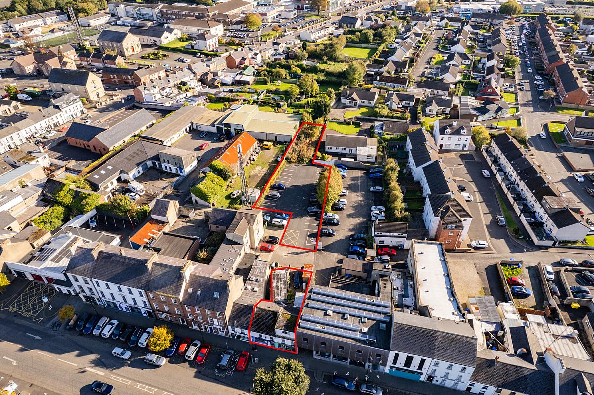 Substantial block of prime town centre commercial property which includes 2 shops, 1 large flat and large car park and lands to rear. The shops and flat are let out at present and the building previously had planning for a replacement 10,500 square foot structure over 3 floors.