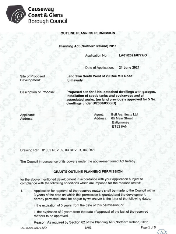 3 No. Detached Dwellings with Garages situated 25m South West of 29 Roe Mill Road, Limavady.