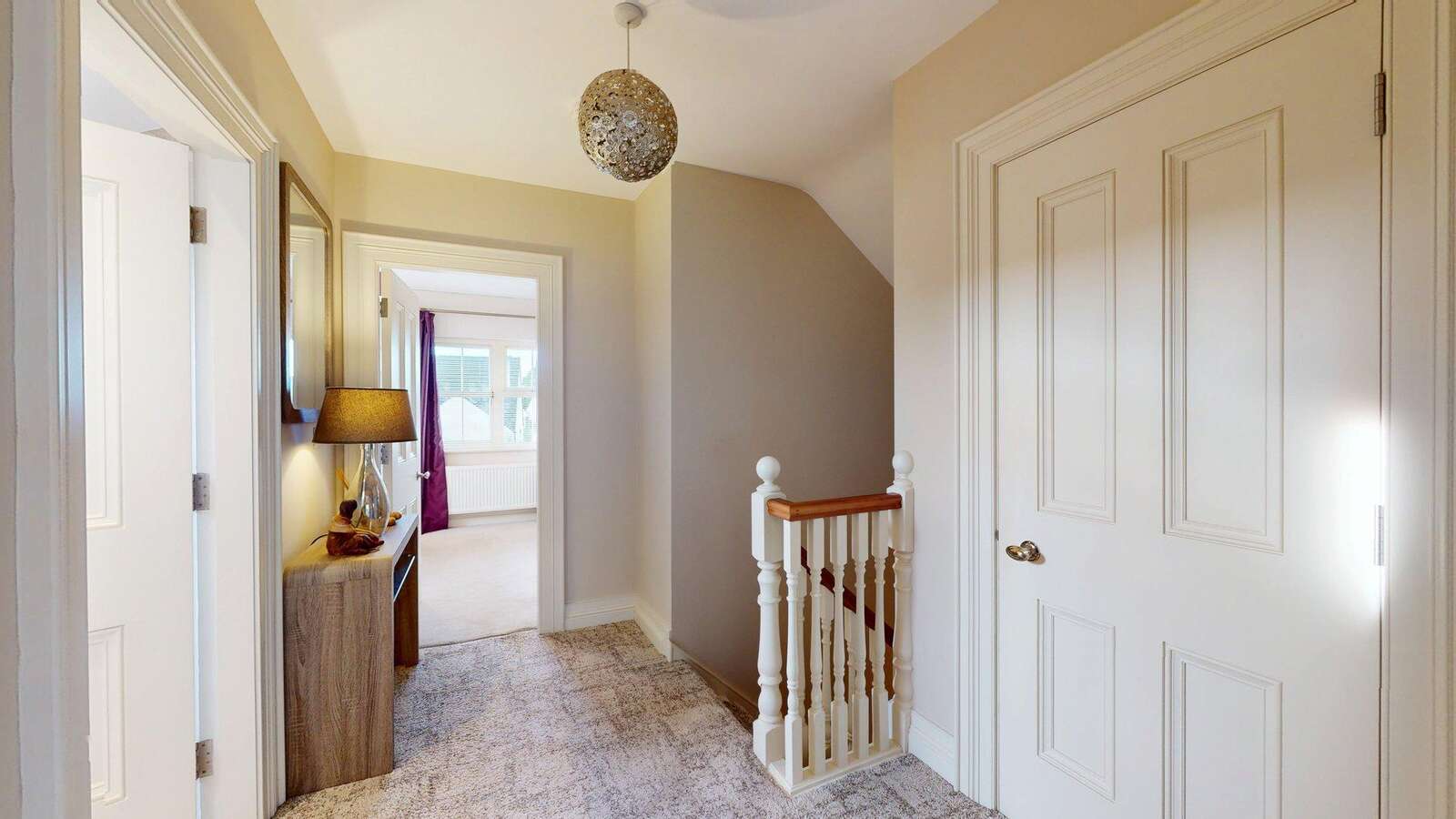 Landing :Carpet floor covering to stairs and landing. Walk-In Storage/Linen Cupboard with open shelving.