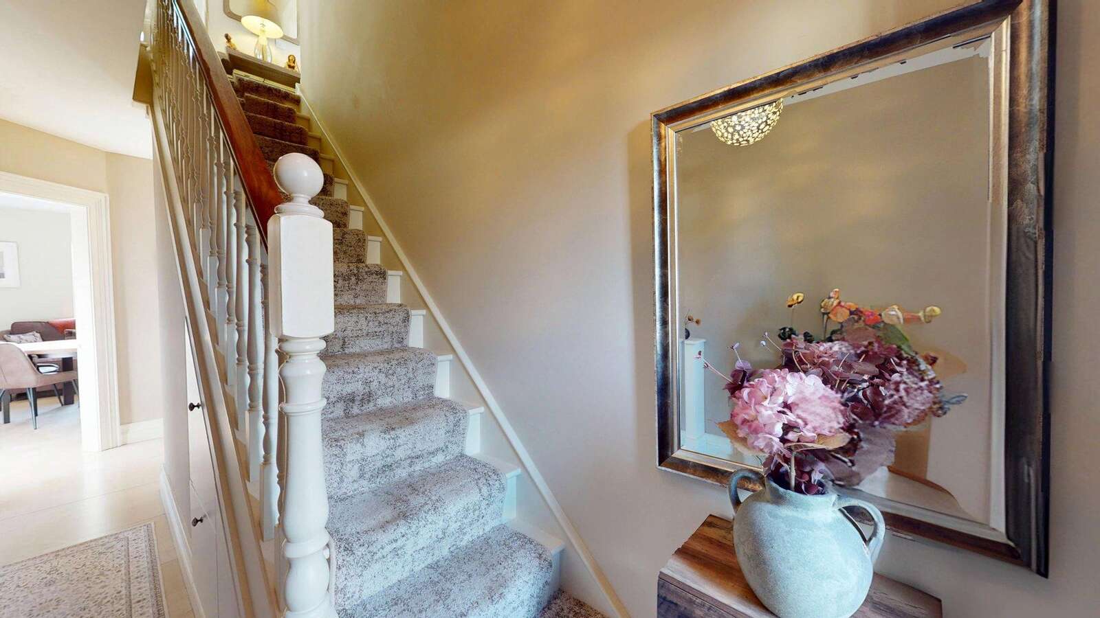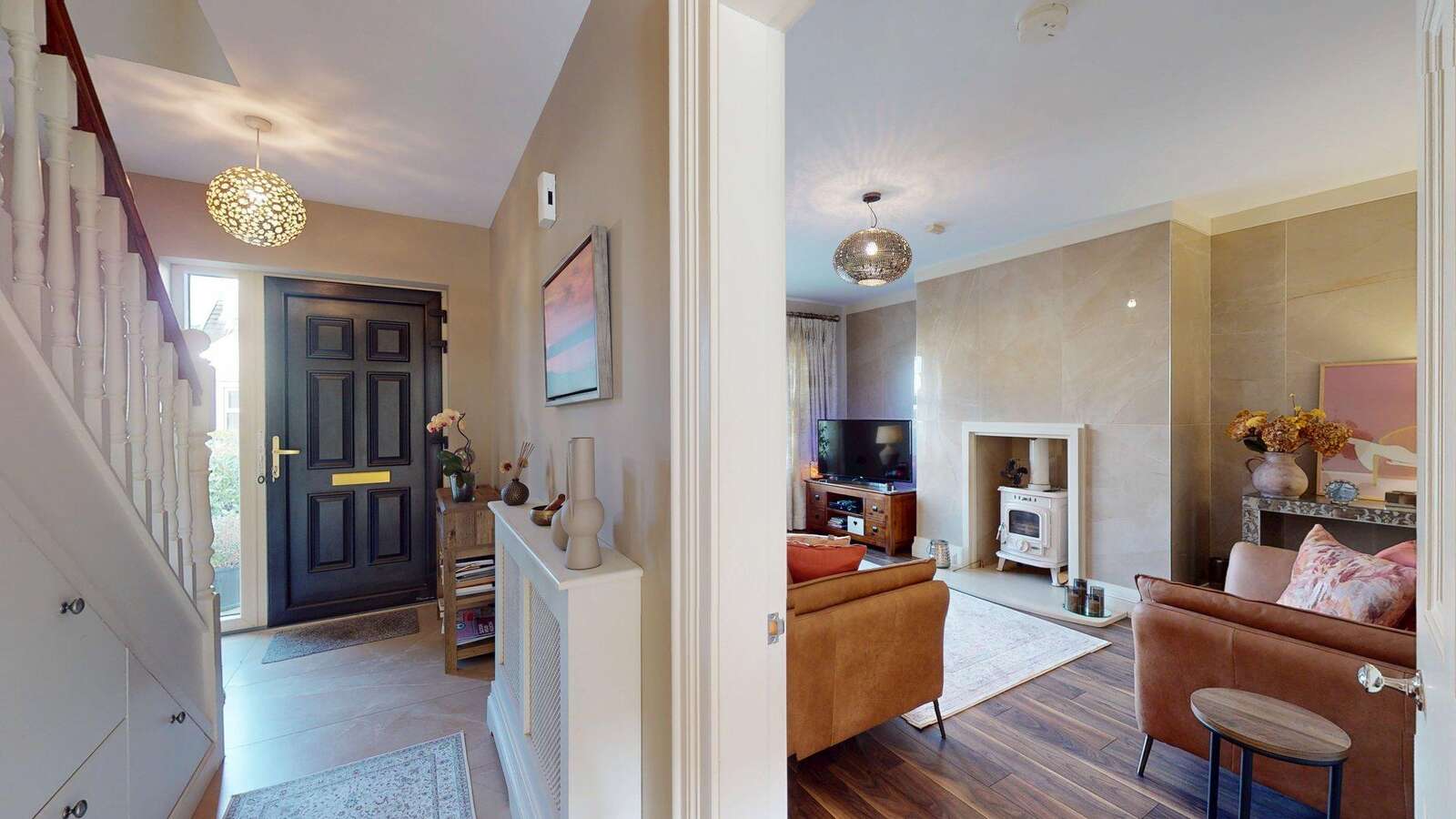 Reception Hall :uPVC composite front door with double glazed side screen. Porcelain tiled floor. Radiator cover. Contemporary staircase with pull out storage drawers.