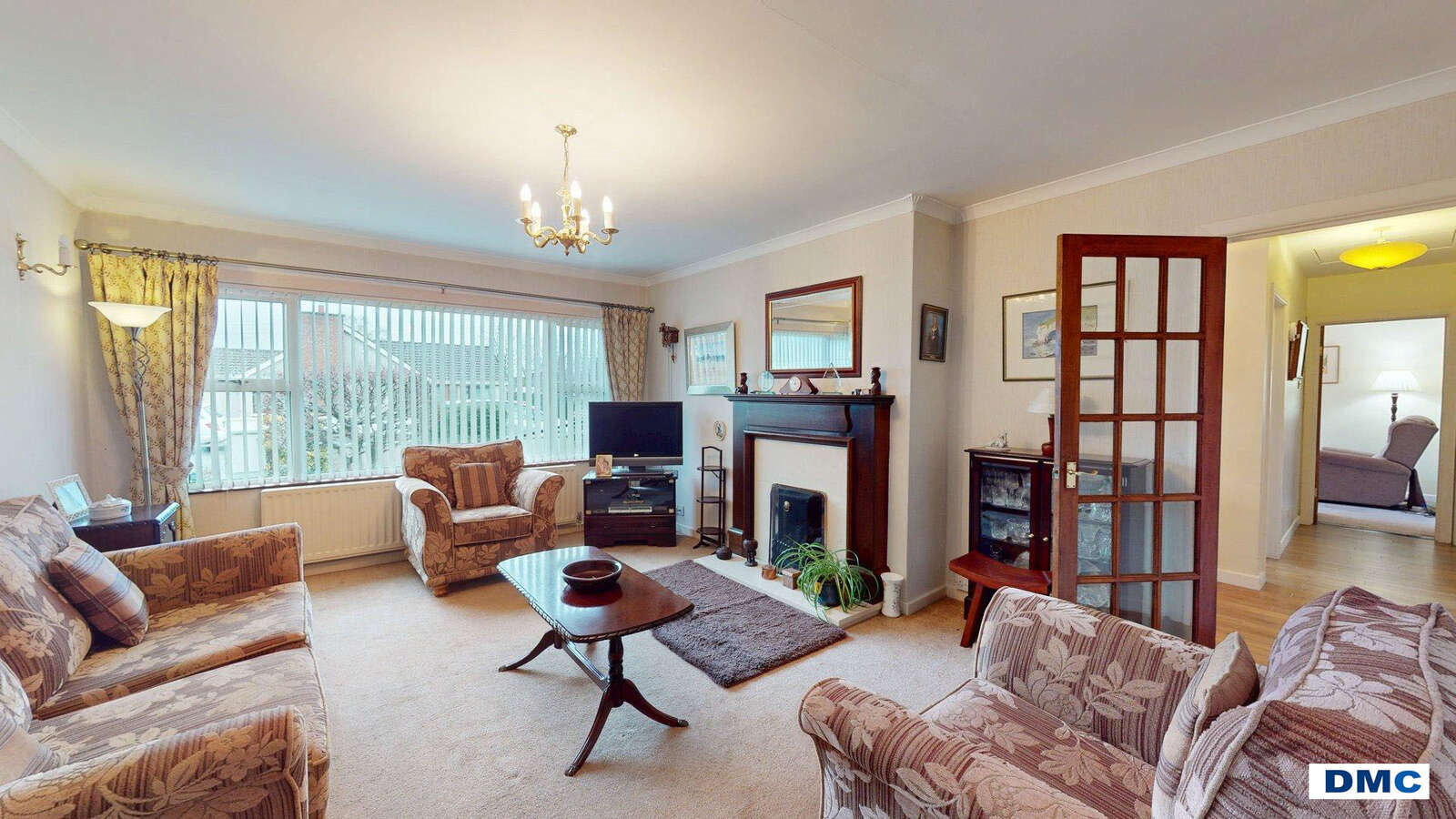16'6 x 12'2 Feature Italian marble fireplace with open fire (piped for gas effect fire) and handcarved mahogany surround. Ceiling cornicing. Wall light points. Glass panelled door leading into hallway.