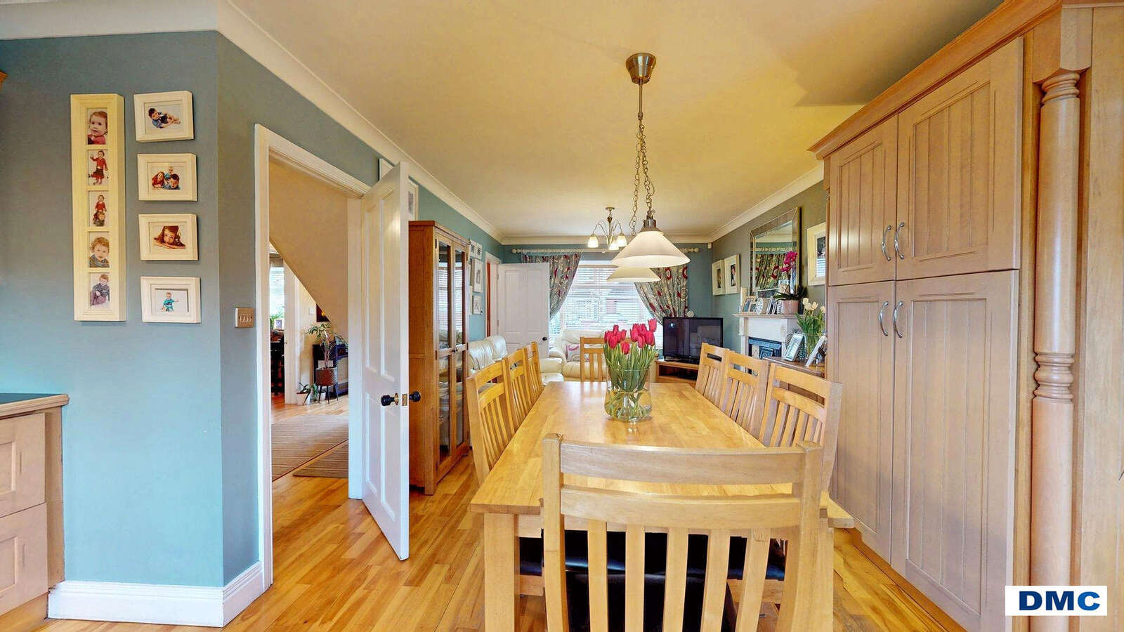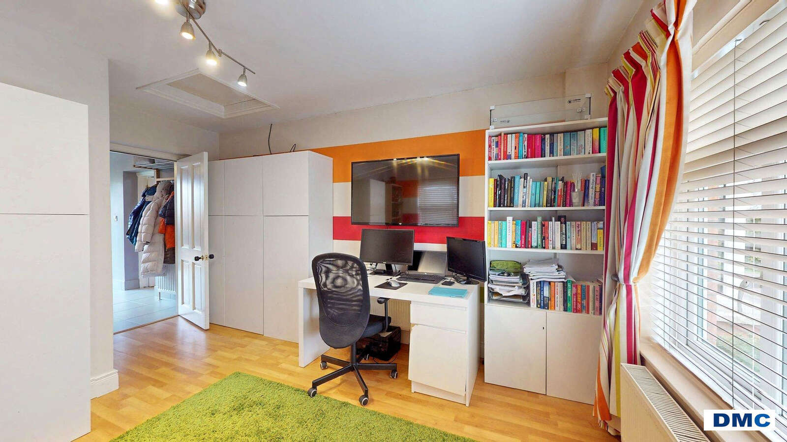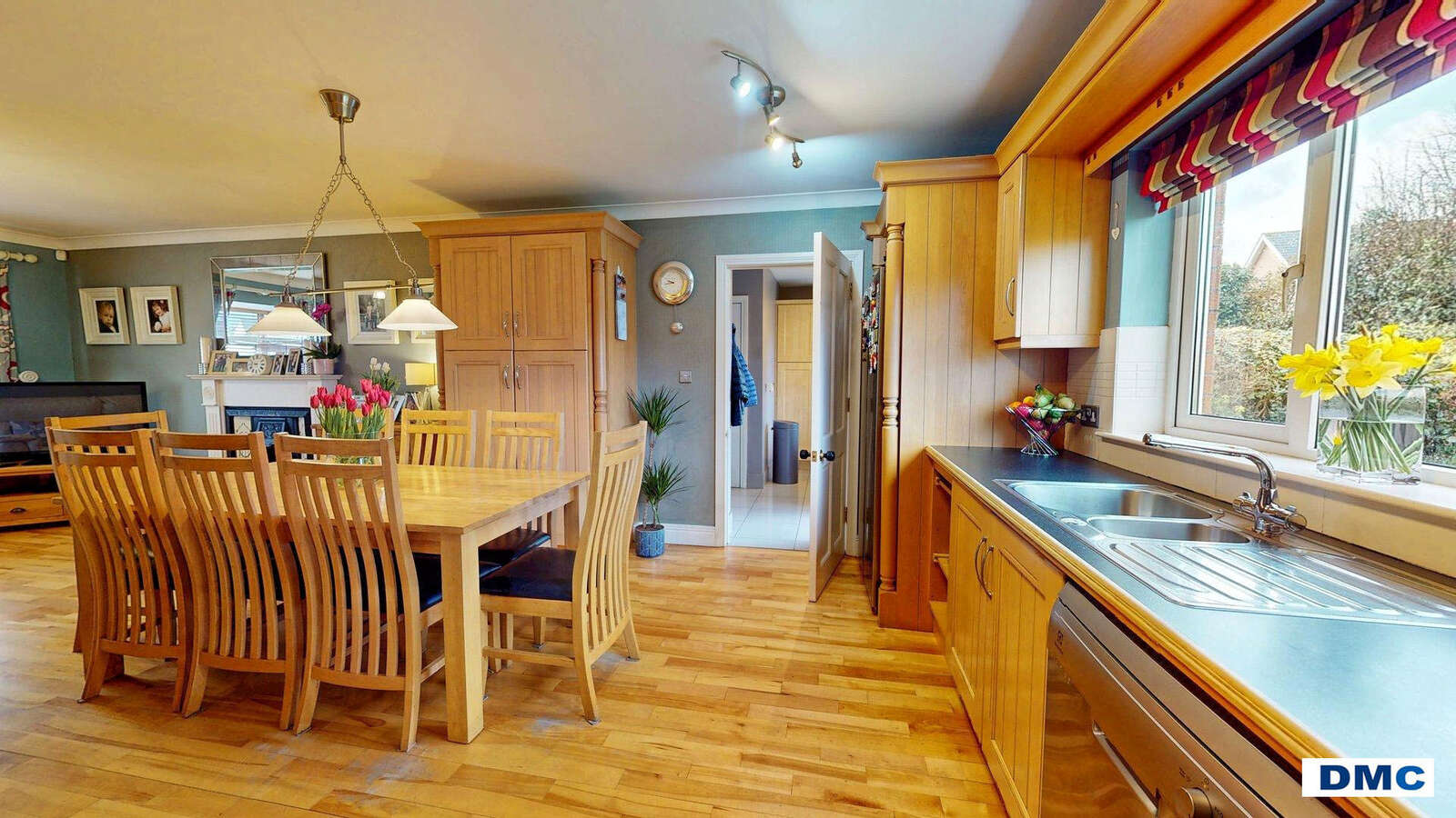 Canadian Maple floor. Ceiling cornicing. Shelved Hotpress.
