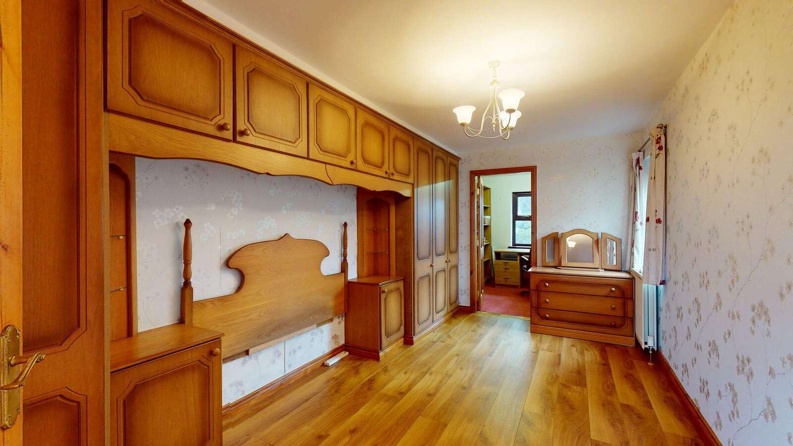 16'4 x 8'8 Excellent range of Built in Oak units including robes, storage lockers, bedside cabinets with display shelving. Honey Oak floor.