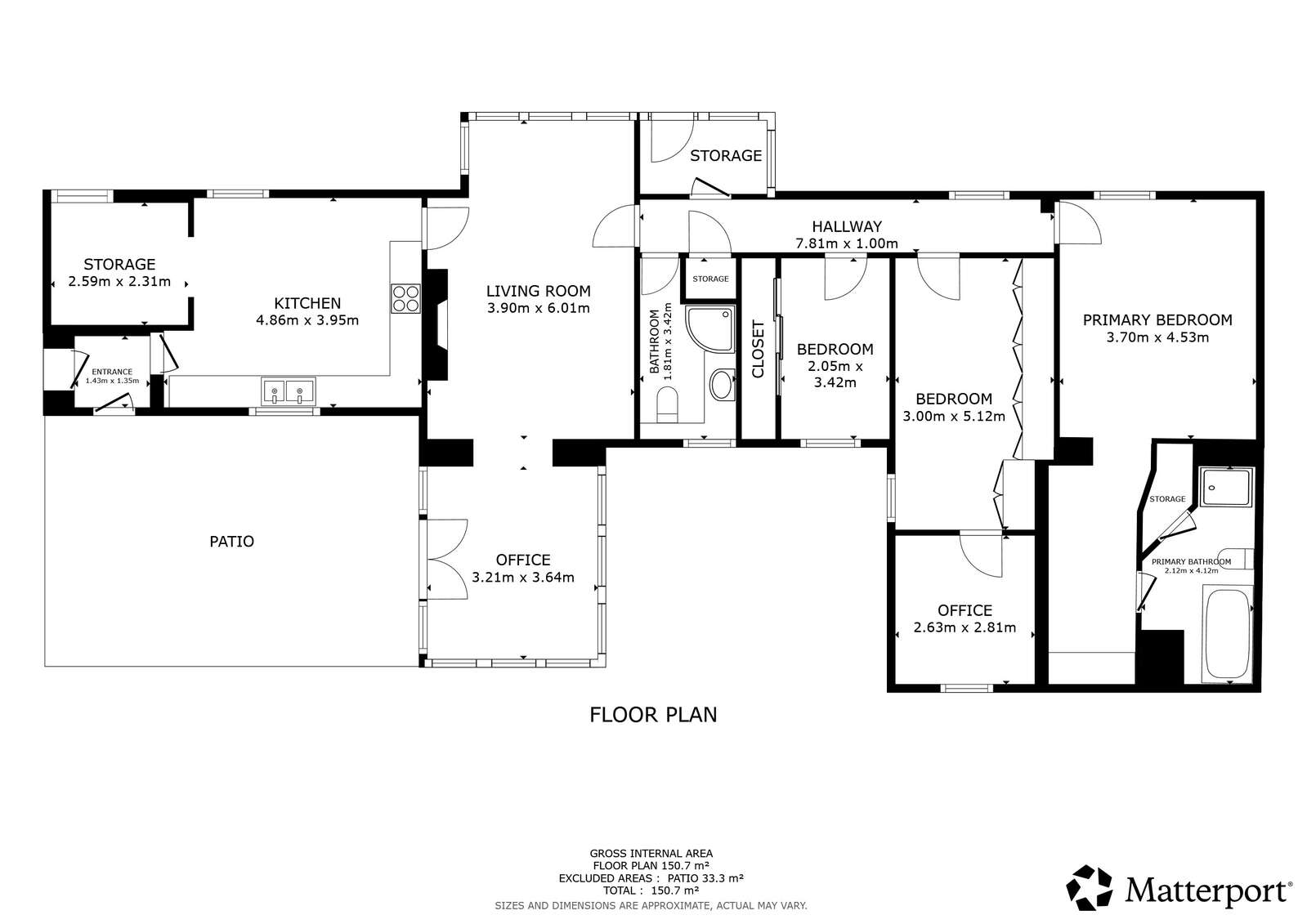 8'8 x 8'6 Carpet flooring.