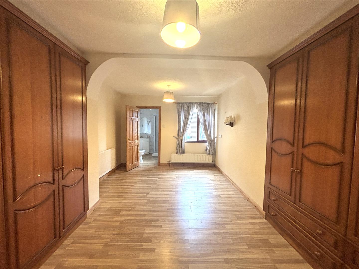 3 piece suite comprising walk in shower unit with Redring electric shower. Vanity unit with wash hand basin. Low flush W.C. Tiled walls. Laminate flooring.