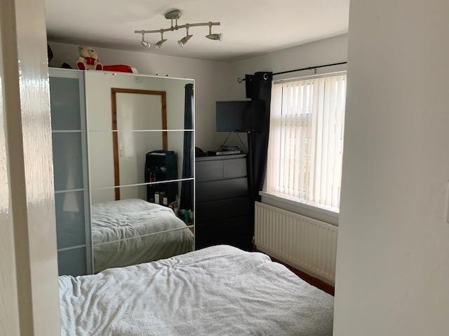 with wood effect laminate flooring, built-in wardrobe.