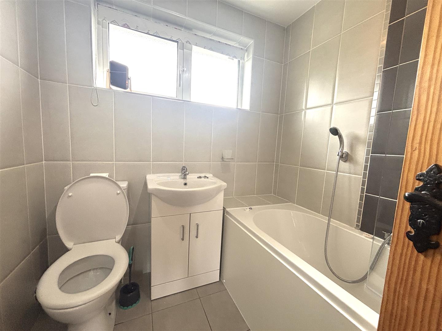 With a fitted white bath with shower attachment over bath. Electric shower over bath. Wall mounted wash hand basin with vanity unit. Low Flush W.C. Extractor fan. Tiled flooring. Part tiled walls.