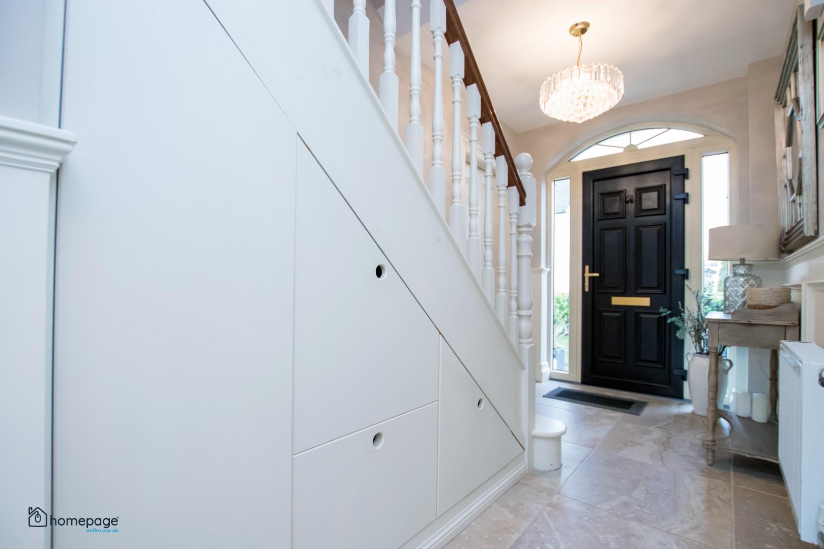 With tiled flooring throughout and feature wall panelling, cloakroom and pull out understairs storage.