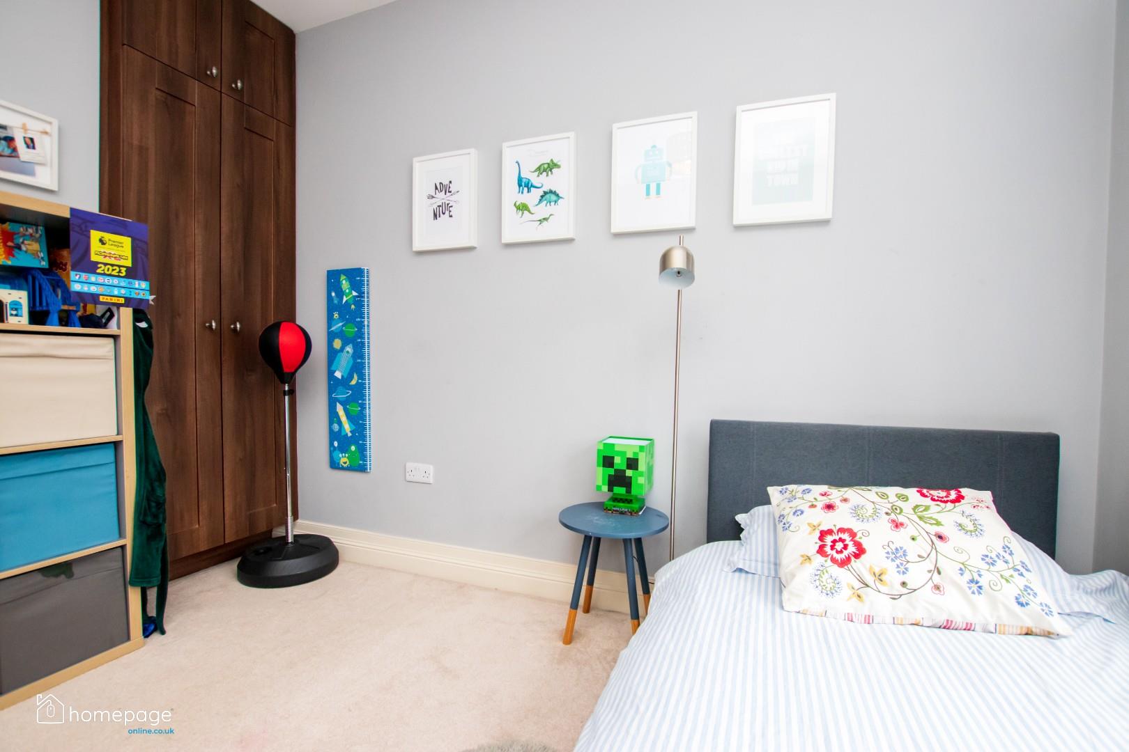 Large double bedroom with high quality flooring throughout, built in wardrobes and overhead storage.