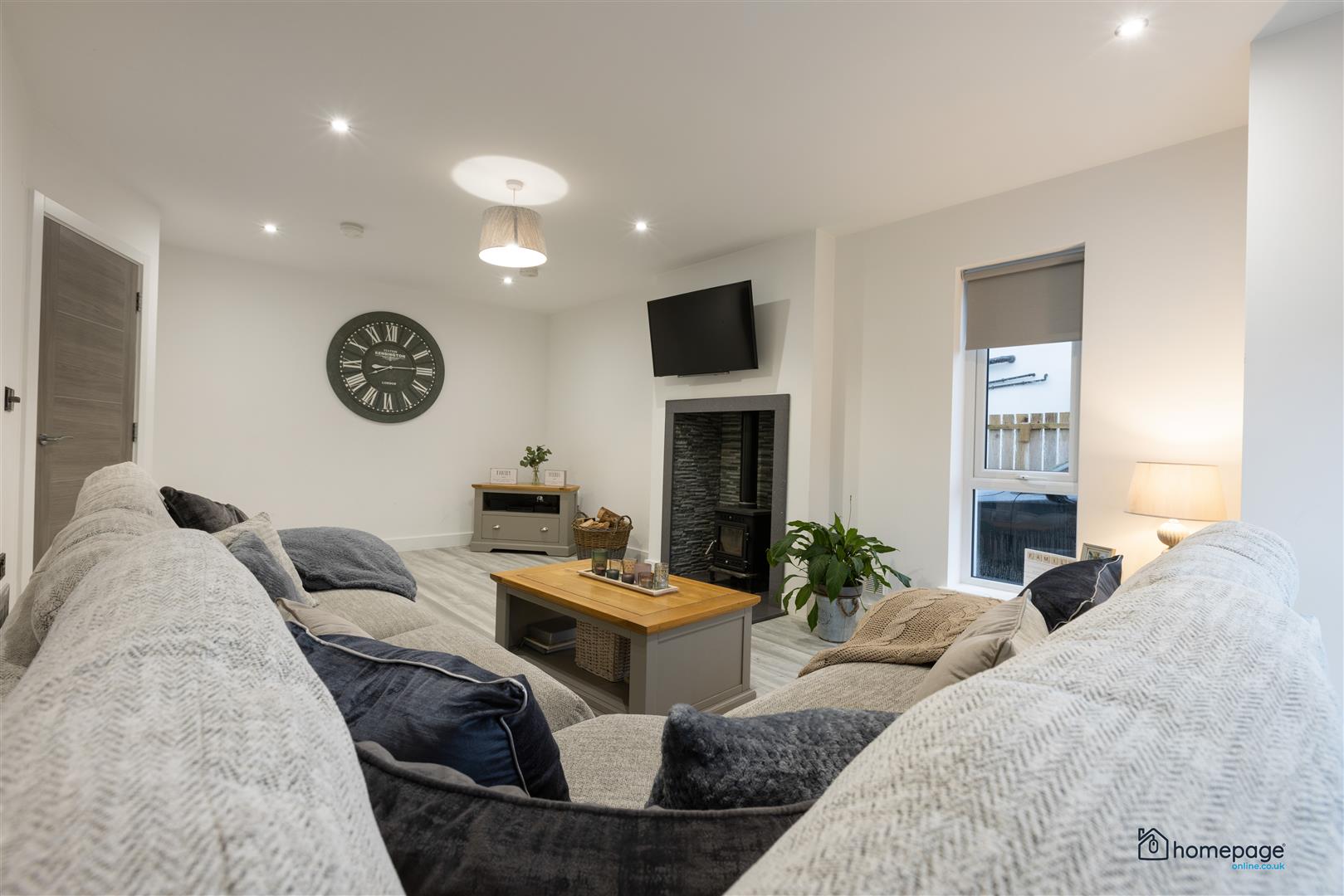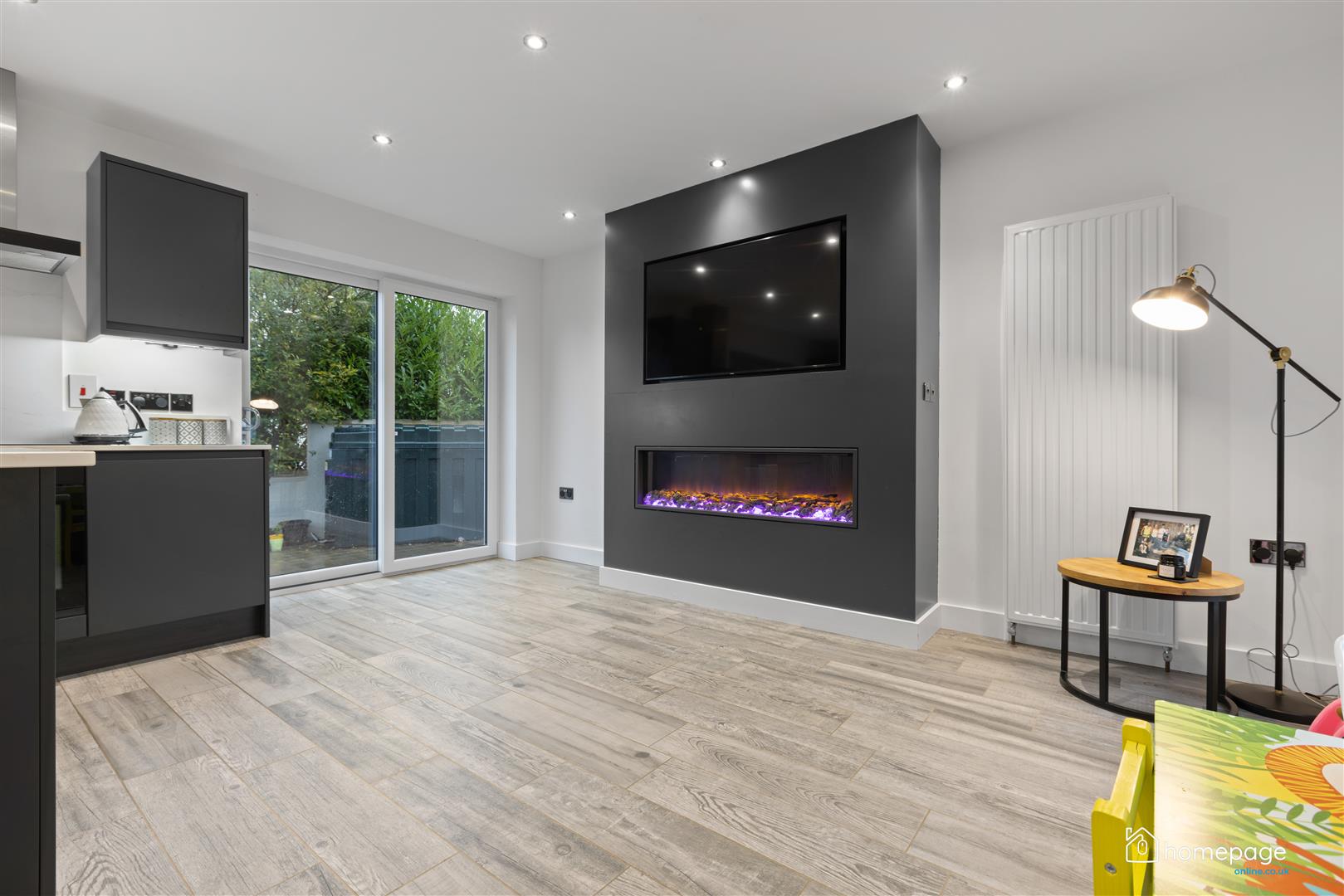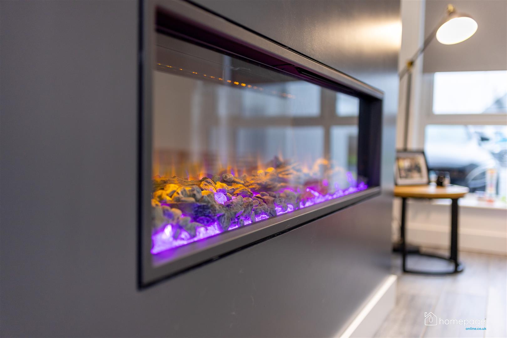 This area is further complemented by additional living space with patio doors leading to rear to include feature media wall to include built in Electric Feature Fire with 50" Samsung TV and vertical radiator.