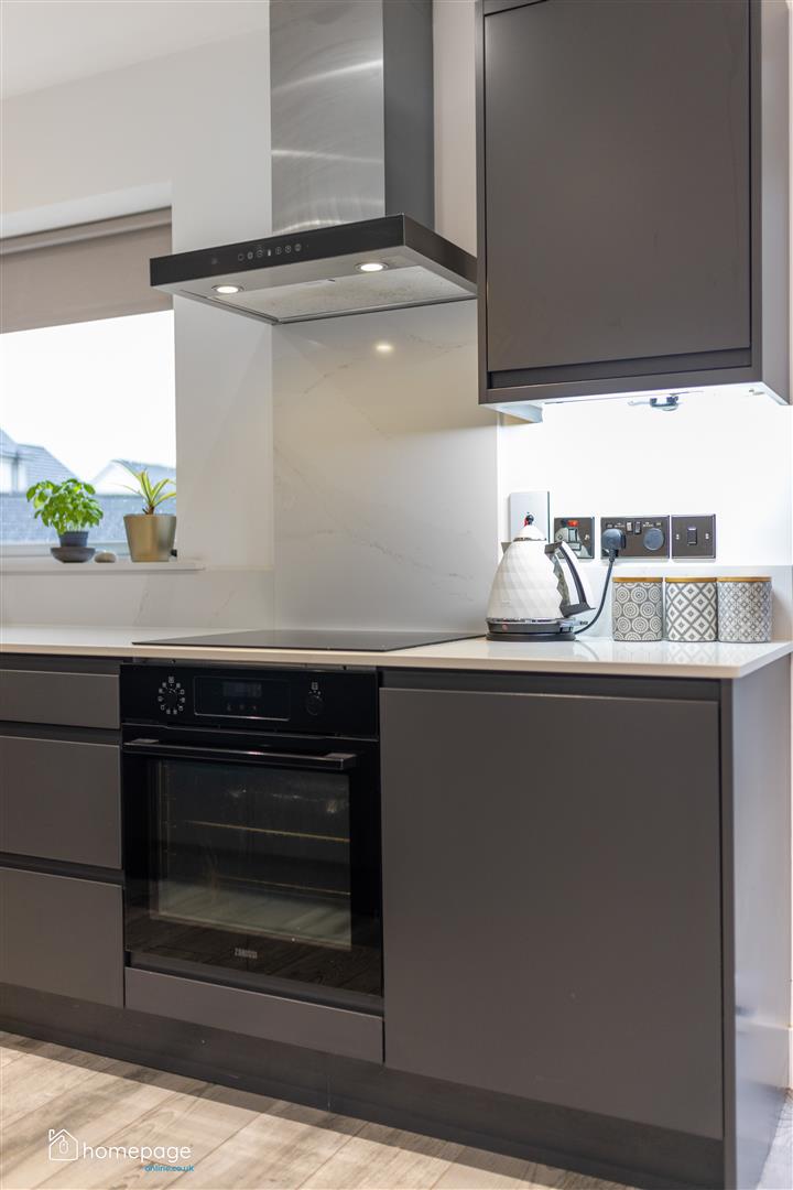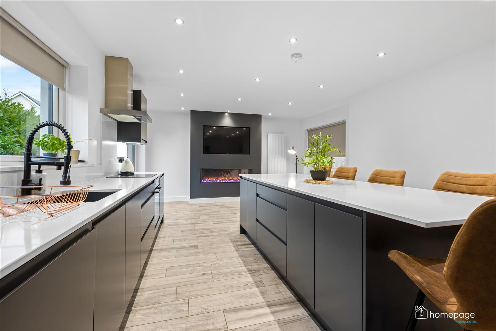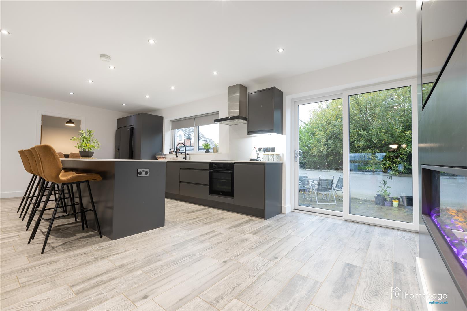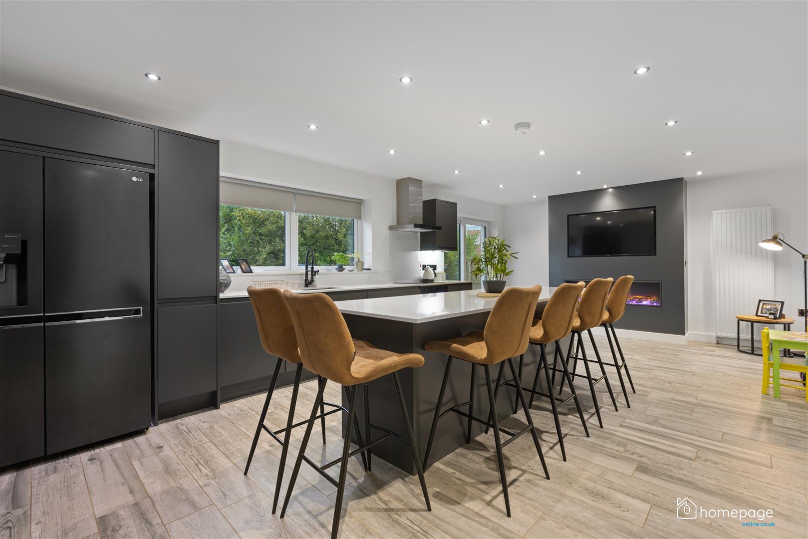 This area is further complemented by additional living space with patio doors leading to rear to include feature media wall to include built in Electric Feature Fire with 50" Samsung TV and vertical radiator.
