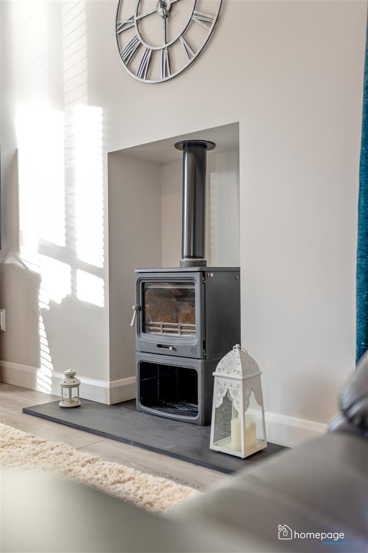 This beautiful detached 'Ex Show Home´ offers spacious living accommodation with designer kitchen, open plan living / dining, feature vaulted ceilings, wood burning stove to living room, enclosed rear garden, tarmac driveway, paved patio area and a bespoke summer house / home office .