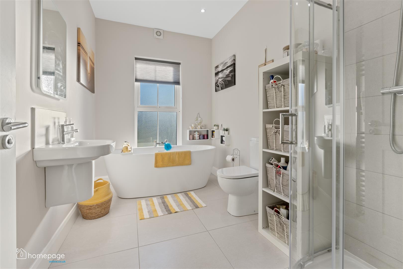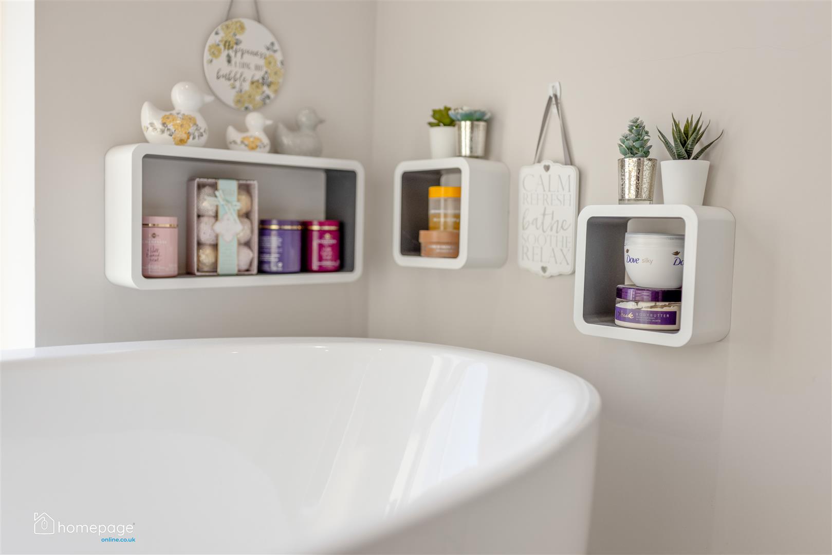 All bathrooms benefit from high quality wall tiling, chrome towel rails, floating vanity units, and thermostatically controlled shower units. The family bathroom includes a feature free standing bath, with a further panel bath on the first floor bathroom.