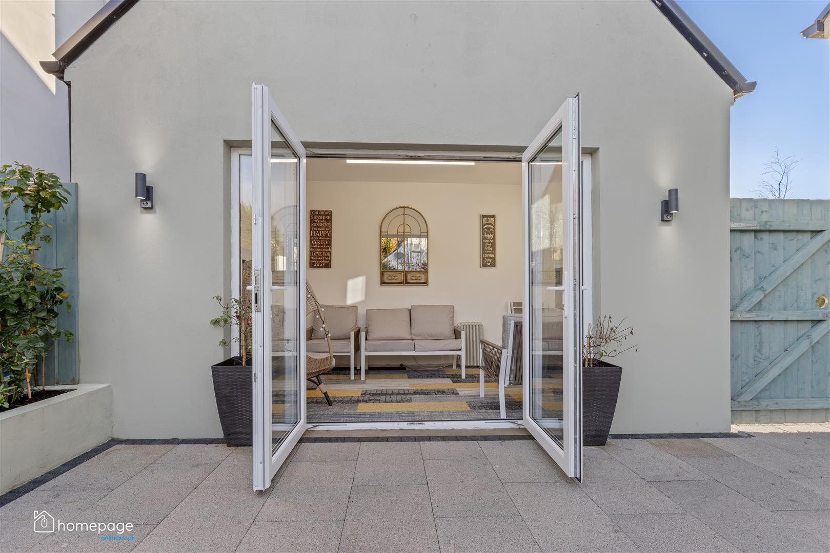 Leading from the kitchen sliding doors, this property's exterior showcases a stunning rear garden space, that has been designed with outdoor enthusiasts in mind. It features a combination of quality paving and garden flower bed walling. Leading to the bespoke Summer House / Home Office, which is also connected the the garage.