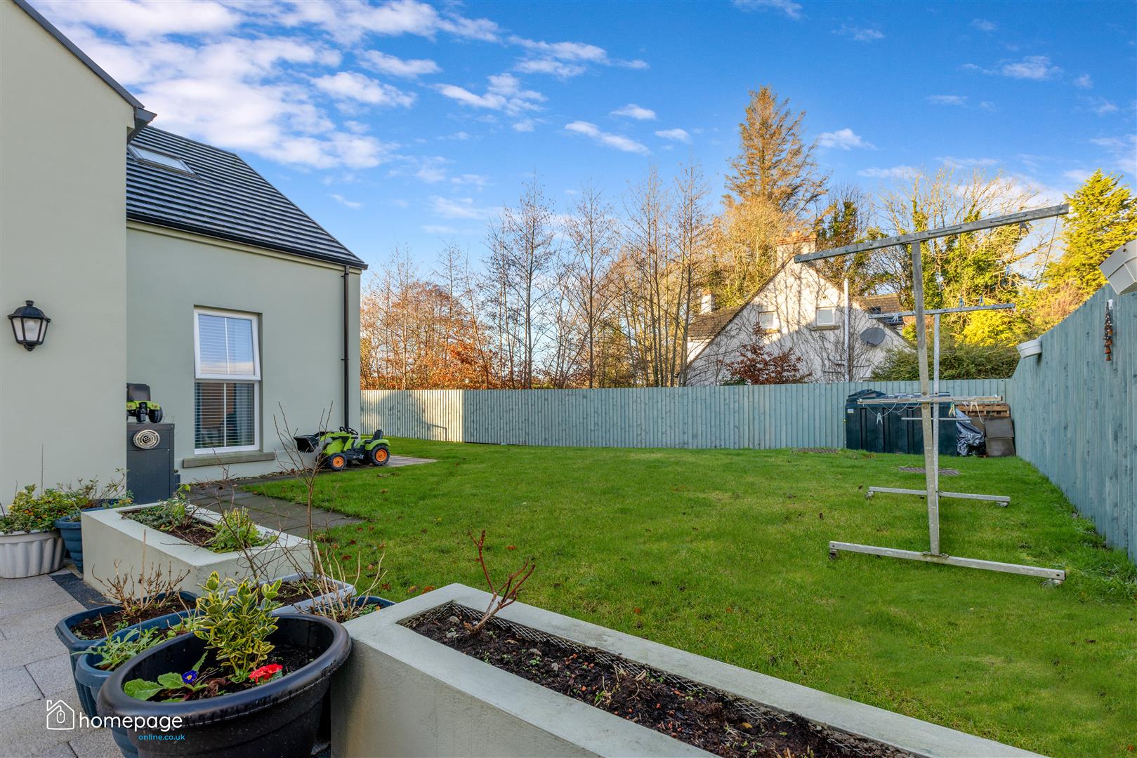 The rear garden offers a private spacious lawn which wraps around the property, enclosed by boundary fencing.