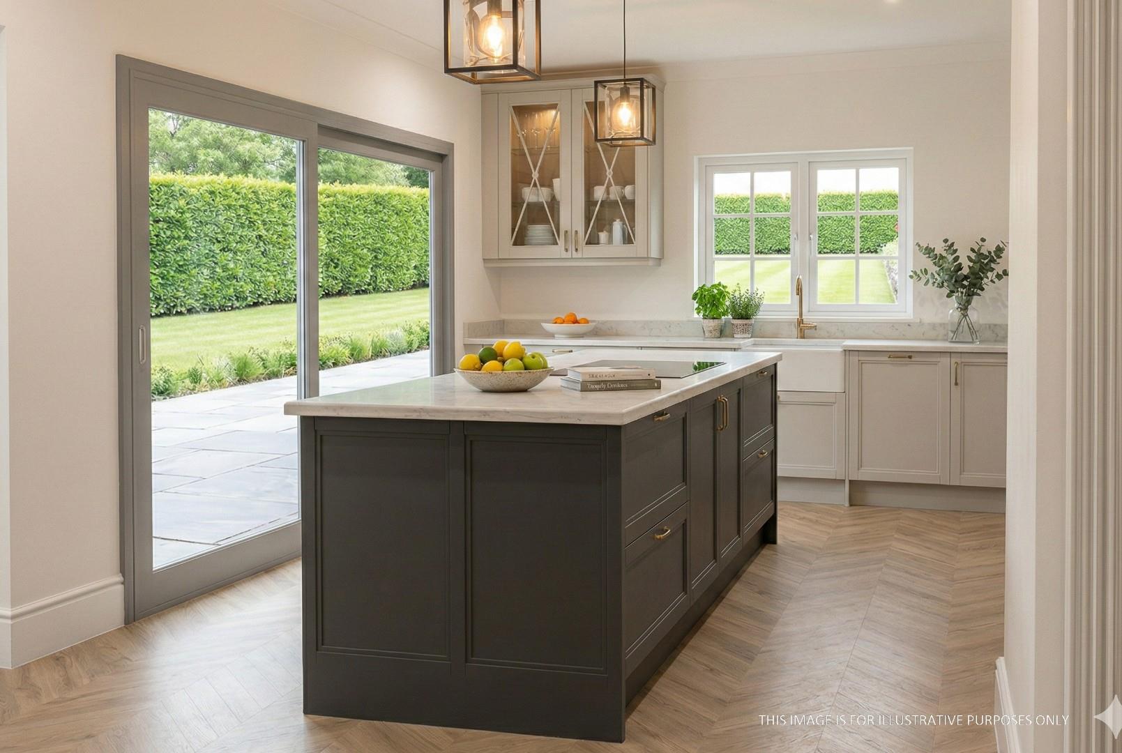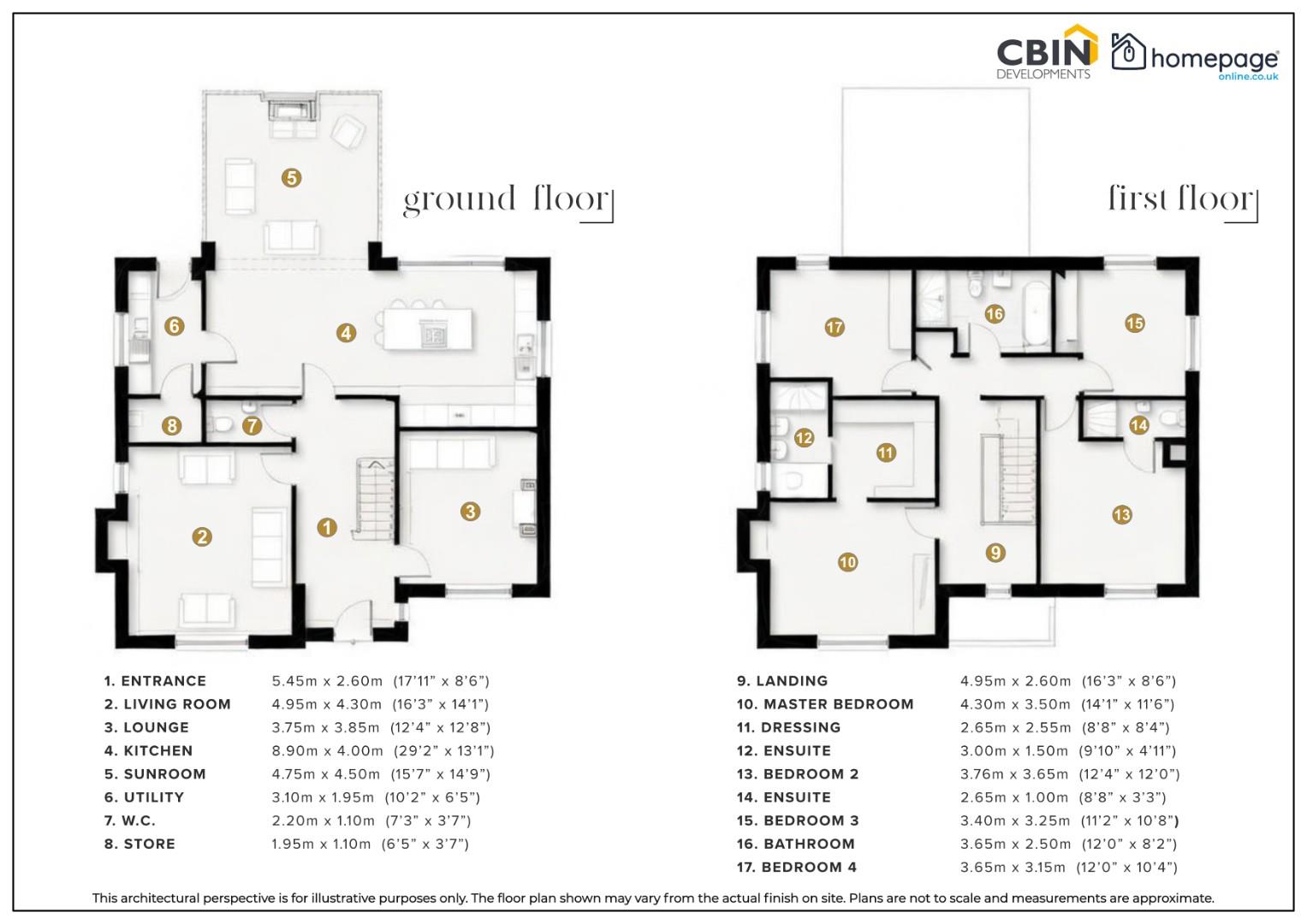 The ground floor comprises a welcoming entrance hall, formal lounge, and an impressive open plan kitchen, dining and living space ideal for modern family life, complemented by a sunroom, utility room and ground floor W.C.