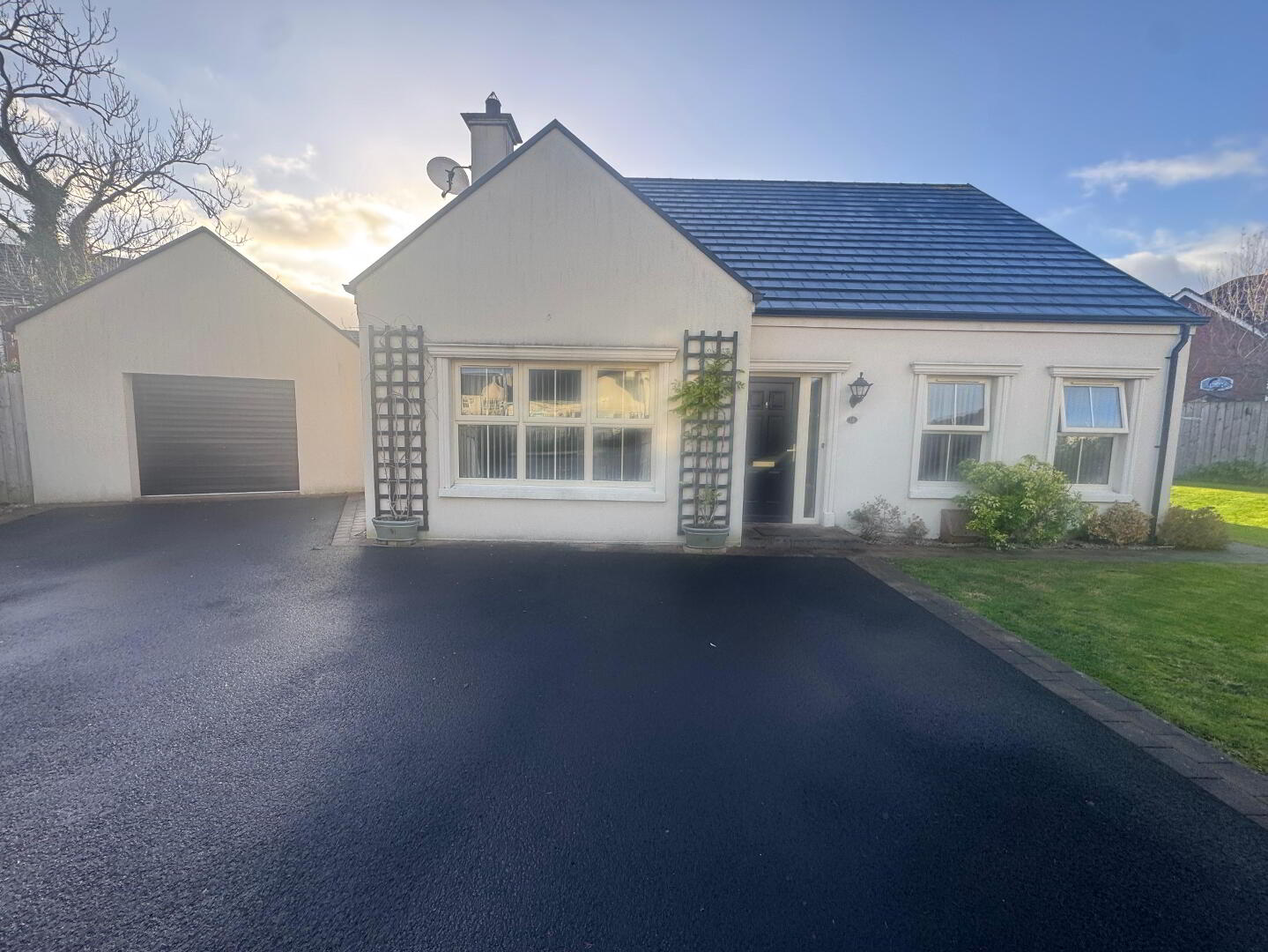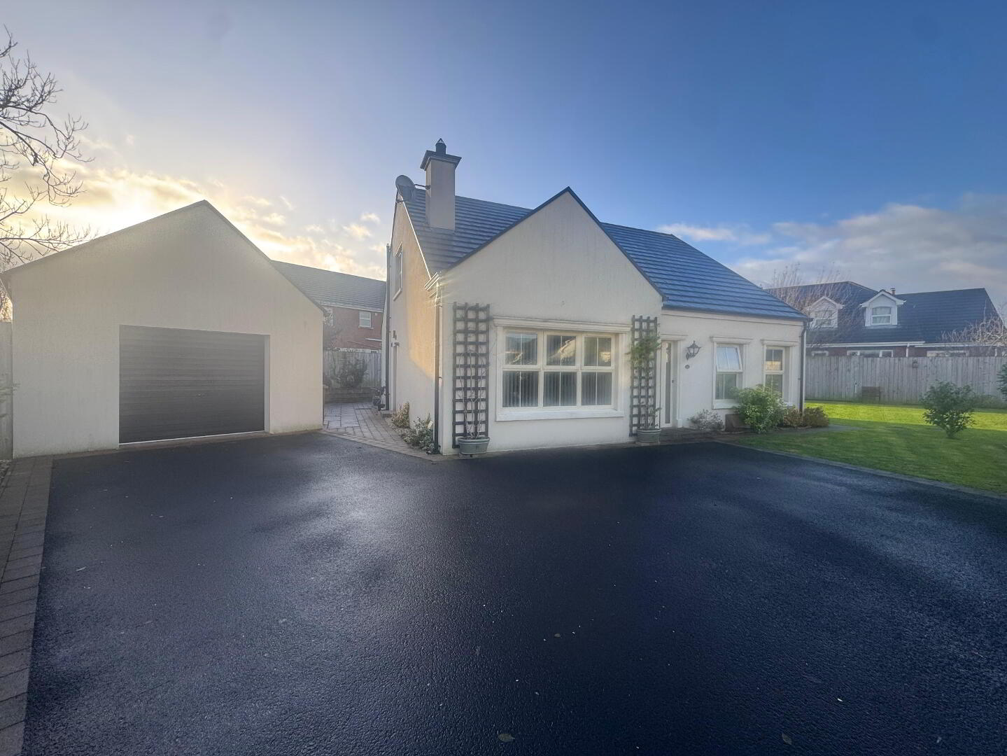 A stunning four bedroom chalet bungalow set on a large private corner site in a much sought after area of Limavady. Modern internal finish with a very high spec finish. Including a large detached garage and gas heating this will not sit long in today's very fast moving market so call now to view.