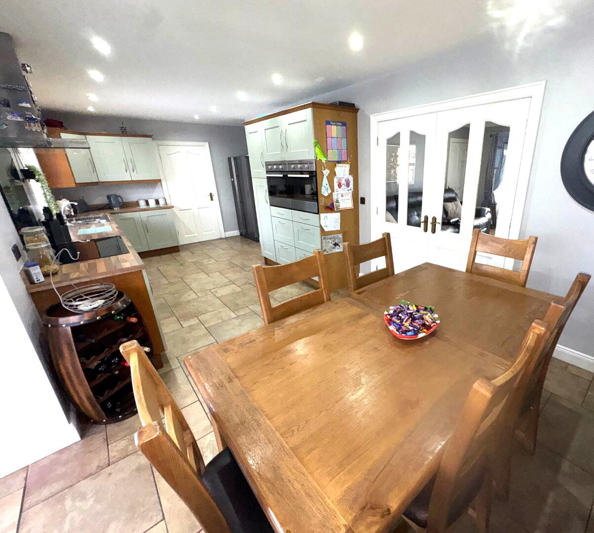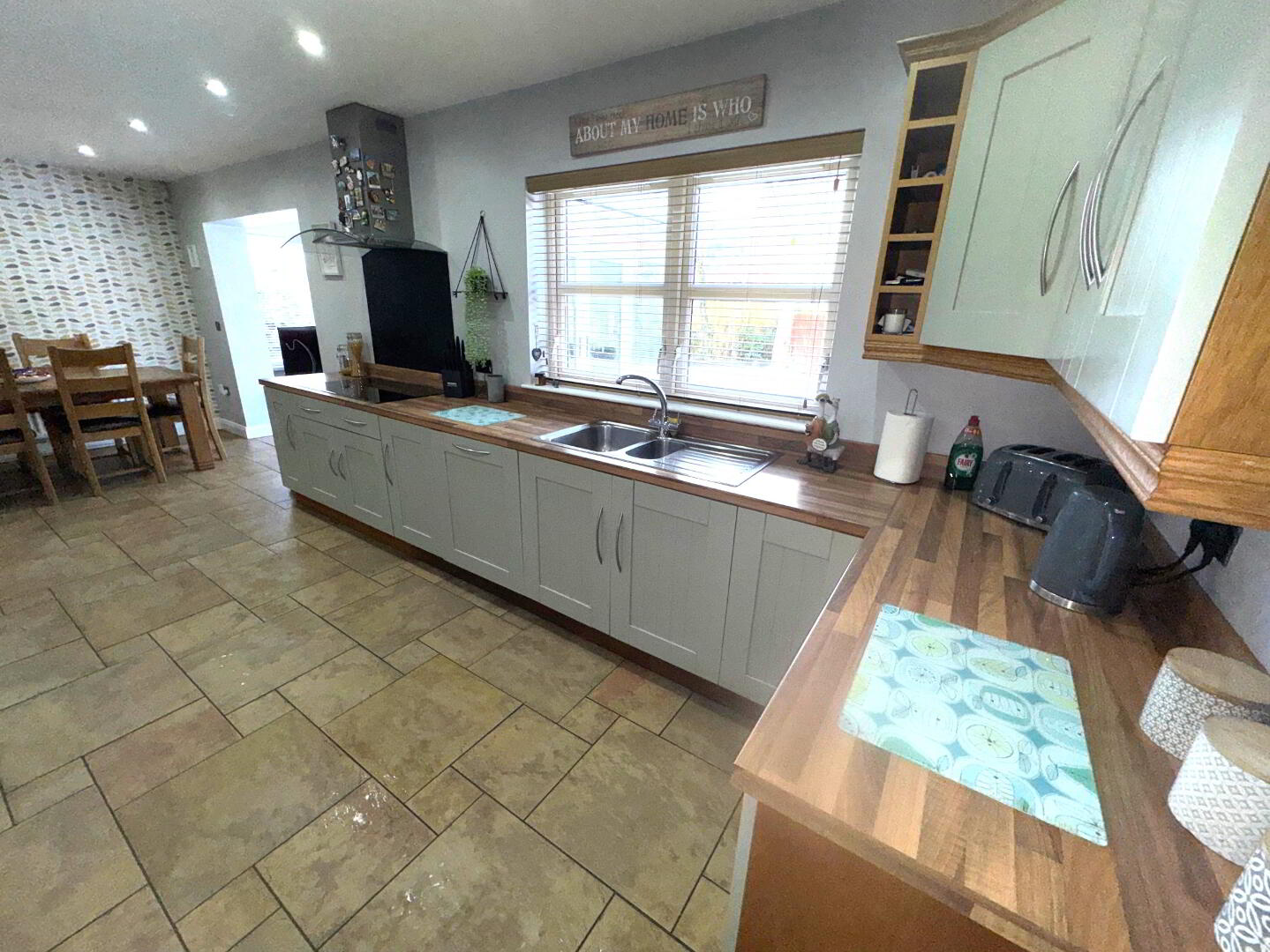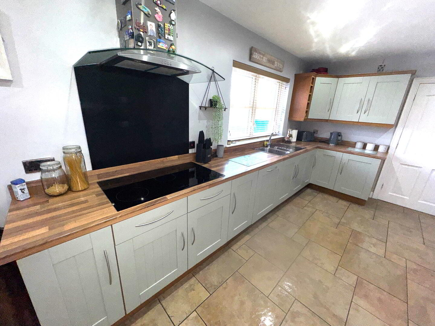 Kitchen / Dining – 23’10 x 9’8 Excellent range of contemporary modern units with worktop. Built in induction hob and oven also built in dishwasher. Plumbed for corner fridge / freezer. Tiled flooring.