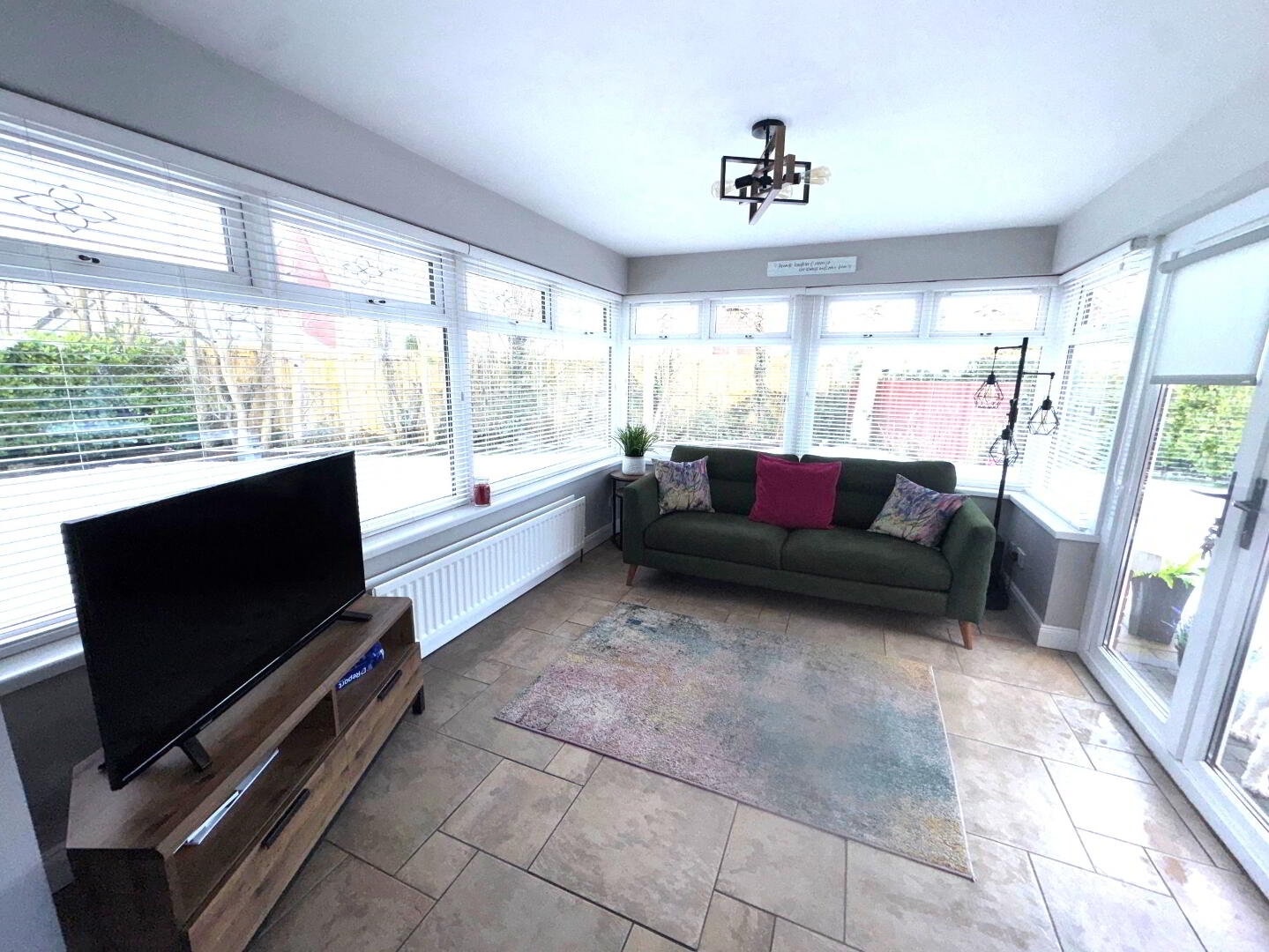 Sun room – 12’2 x 9’4 Patio doors leading to private garden. Tiled flooring.