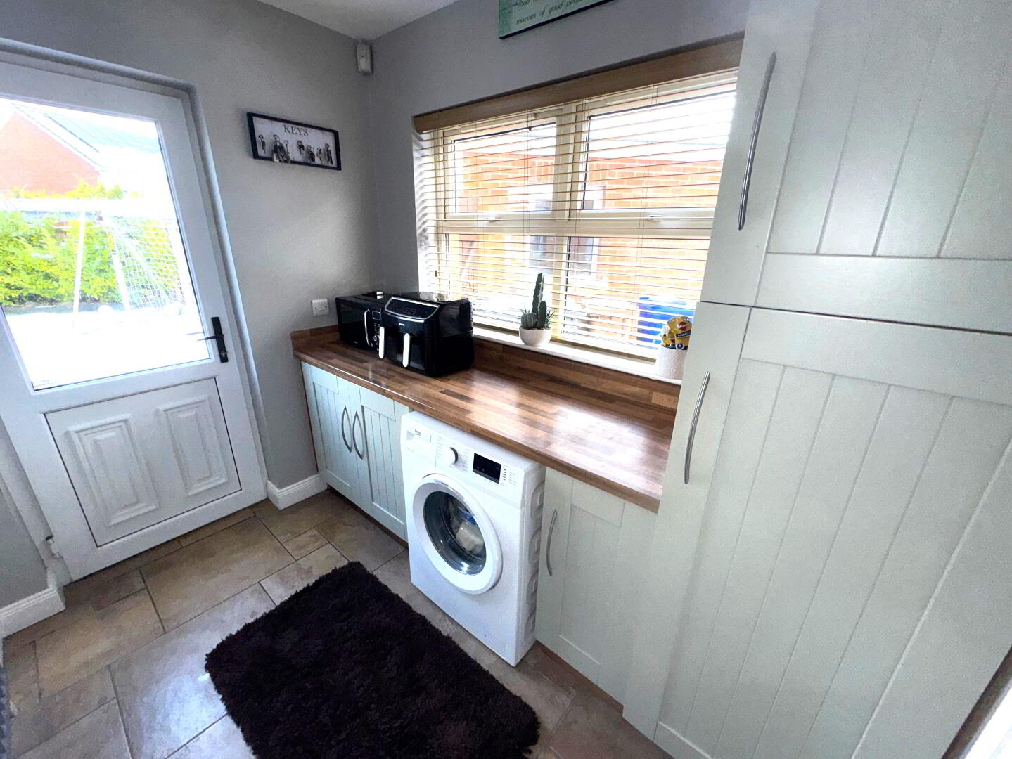 Utility Room – 8’4 x 6’2 With excellent range of units. Plumbed for washing machine and tiled flooring.