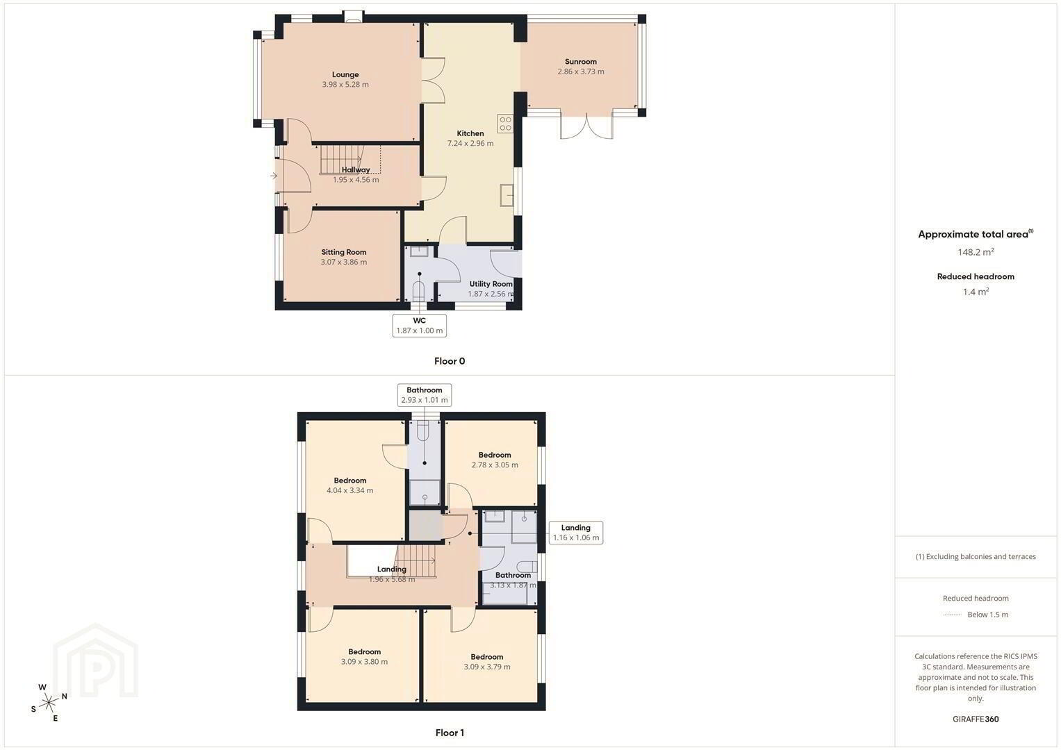 Separate WC – 6’2 x 3’4 WC, wash hand basin and tiled flooring.