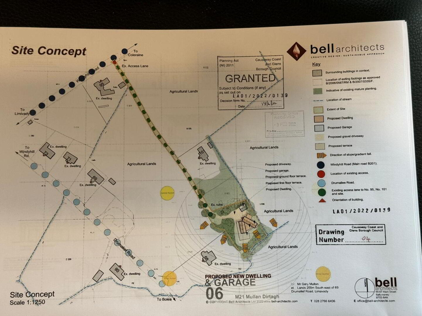 * Full planning permission granted for one and half storey dwelling and detached double garage and pool/spa area. Full plans available for viewing (Contact our office for more information).