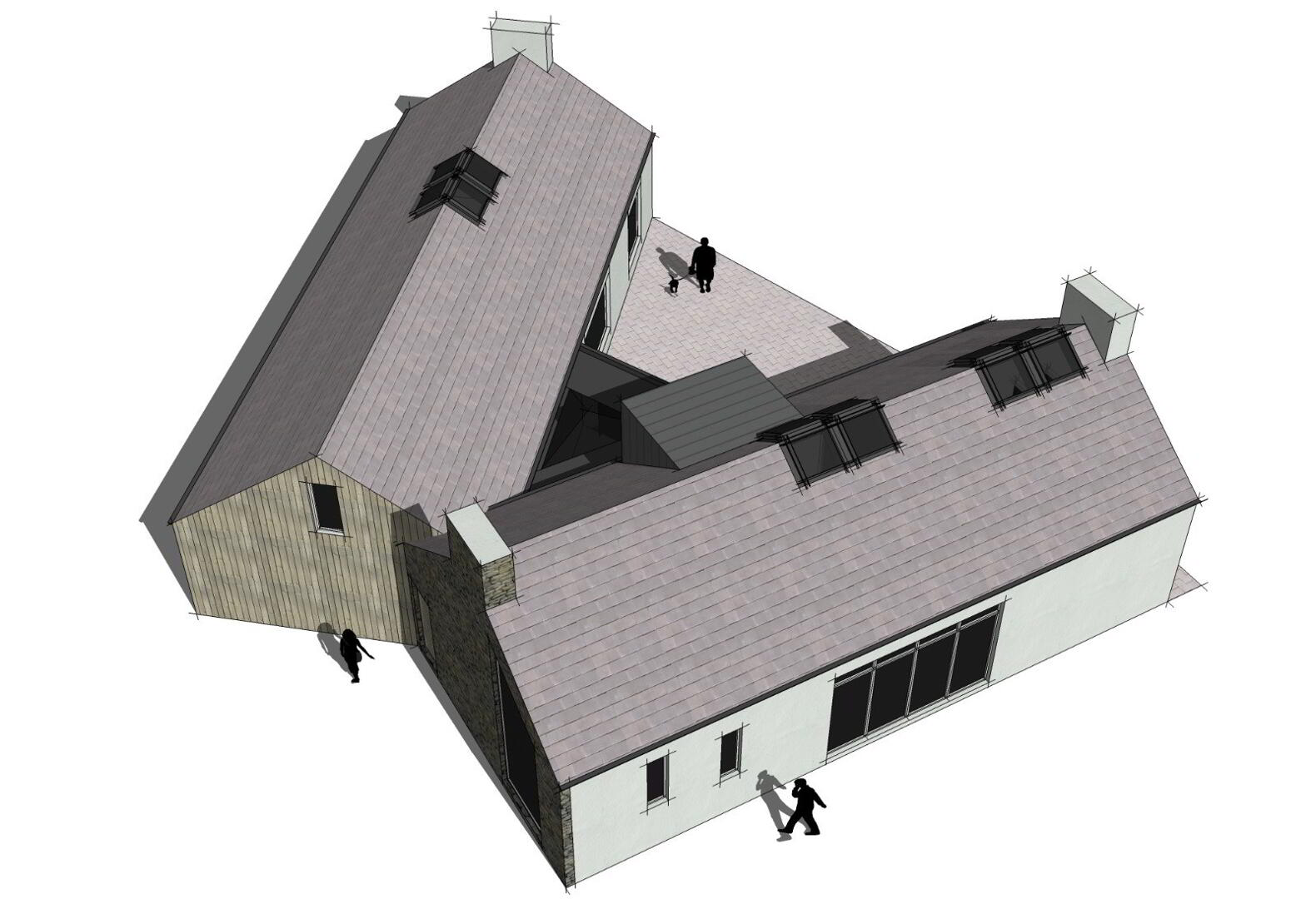 * Designed and positioned to follow the course of the sun. The plan includes underfloor heating, solar panels, wood burning stove, vaulted ceilings, open plan living with mezzanine overlooking the living area. The Mezzanine Room / Library leads out to an Outdoor Balcony with glass paneling overlooking the Courtyard and the Keady Mountain. There are floor to ceiling windows, french doors leading from the Sun Room / Orangery to the Courtyard and roof windows to bring in as much natural light as possible.