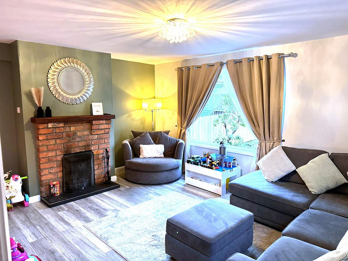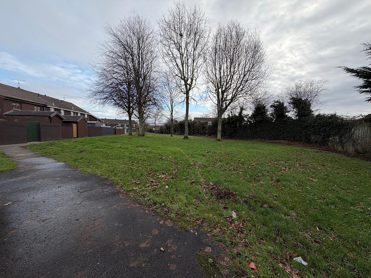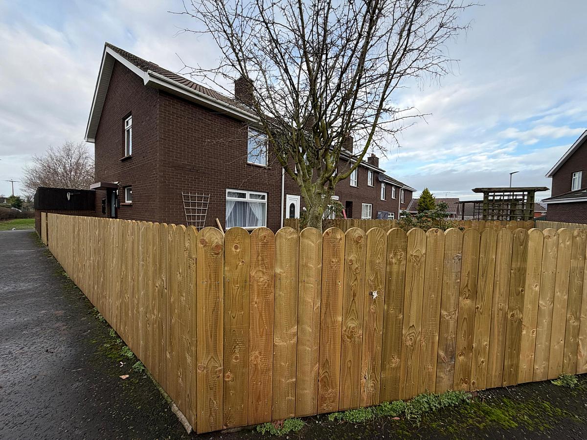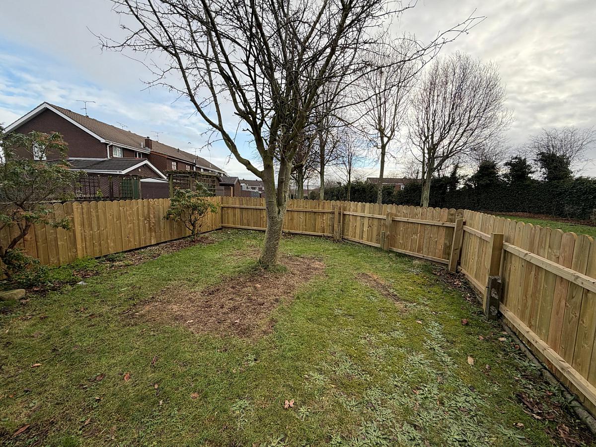 Corner site with private front and side gardens enclosed by fencing.