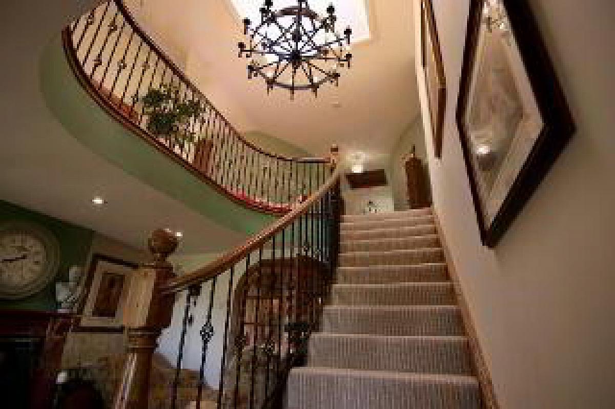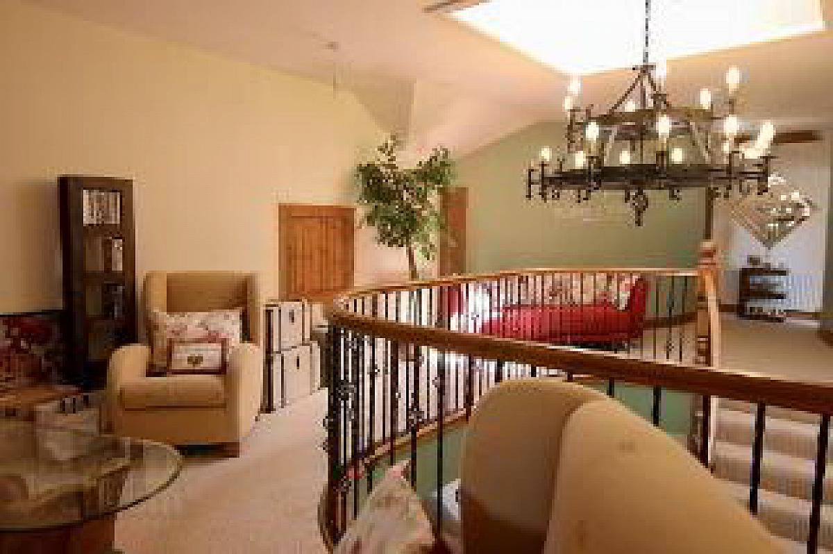 With a feature pine antique pine surround fireplace, cast iron inset, tiled hearth, solid wooden flooring, bespoke wrought iron sweeping staircase to gallery style landing.