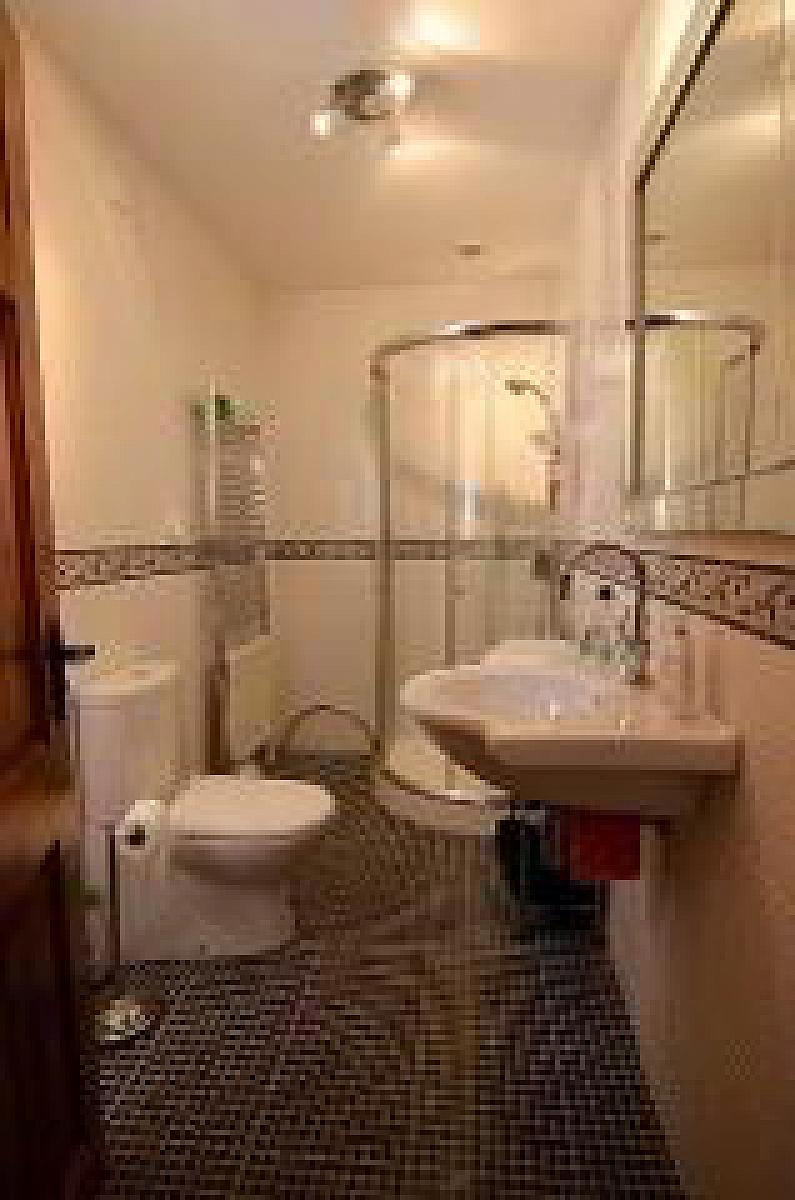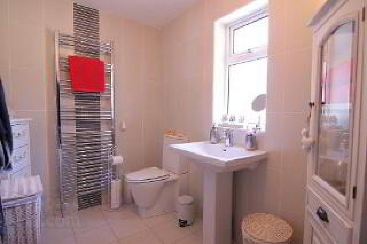 Comprising of a WC, a corner walk in shower cubicle with a thermostatic shower fitting, heated chrome towel rail, extractor fan, wall tiling and tiled flooring.