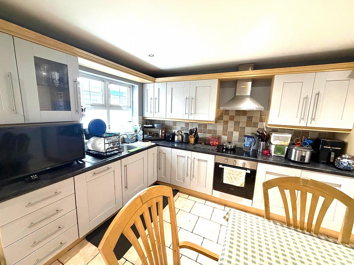 135 x 132 With a good range of contemporary units with matching worktops to include stainless steel sink unit and chrome mixer taps. Under stairs storage. Built in electric oven with matching ceramic hob along with extractor fan. Integrated dishwasher.