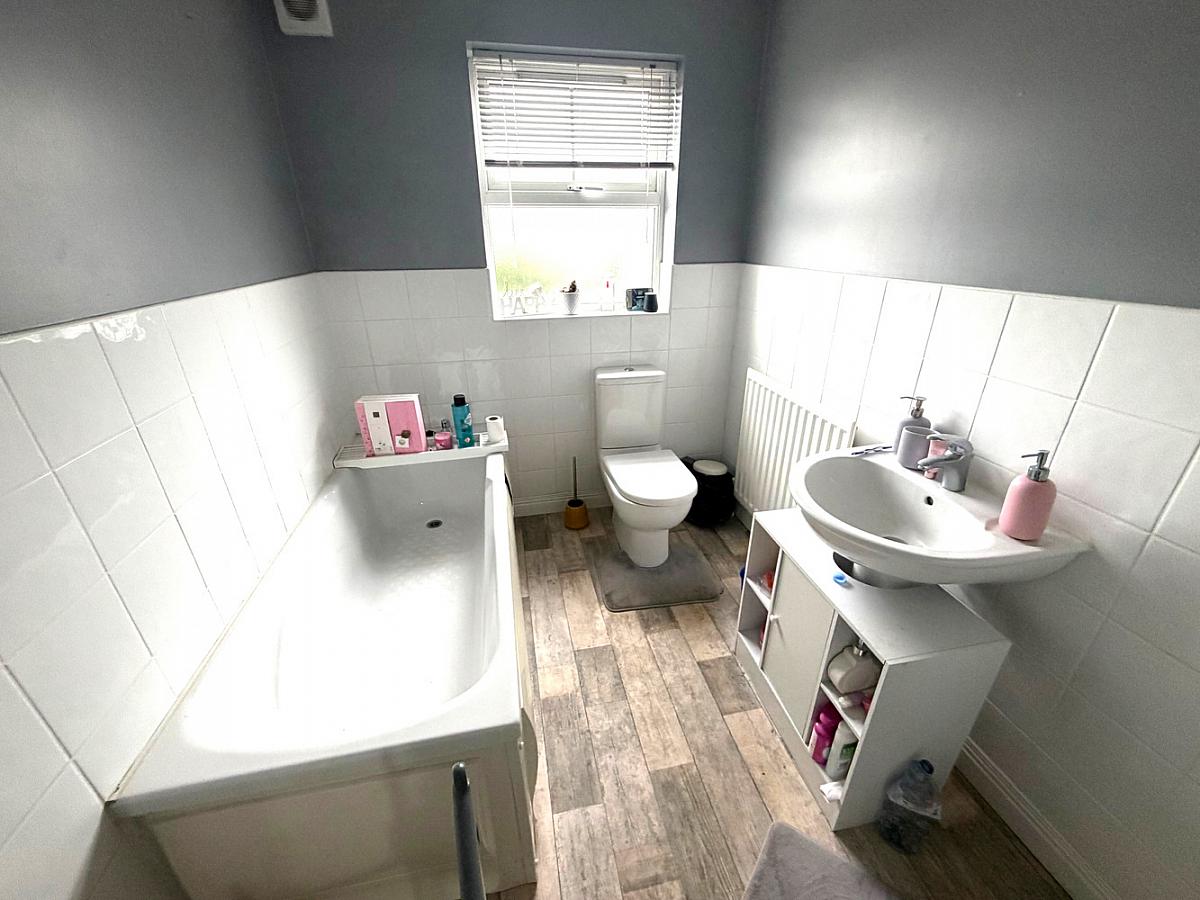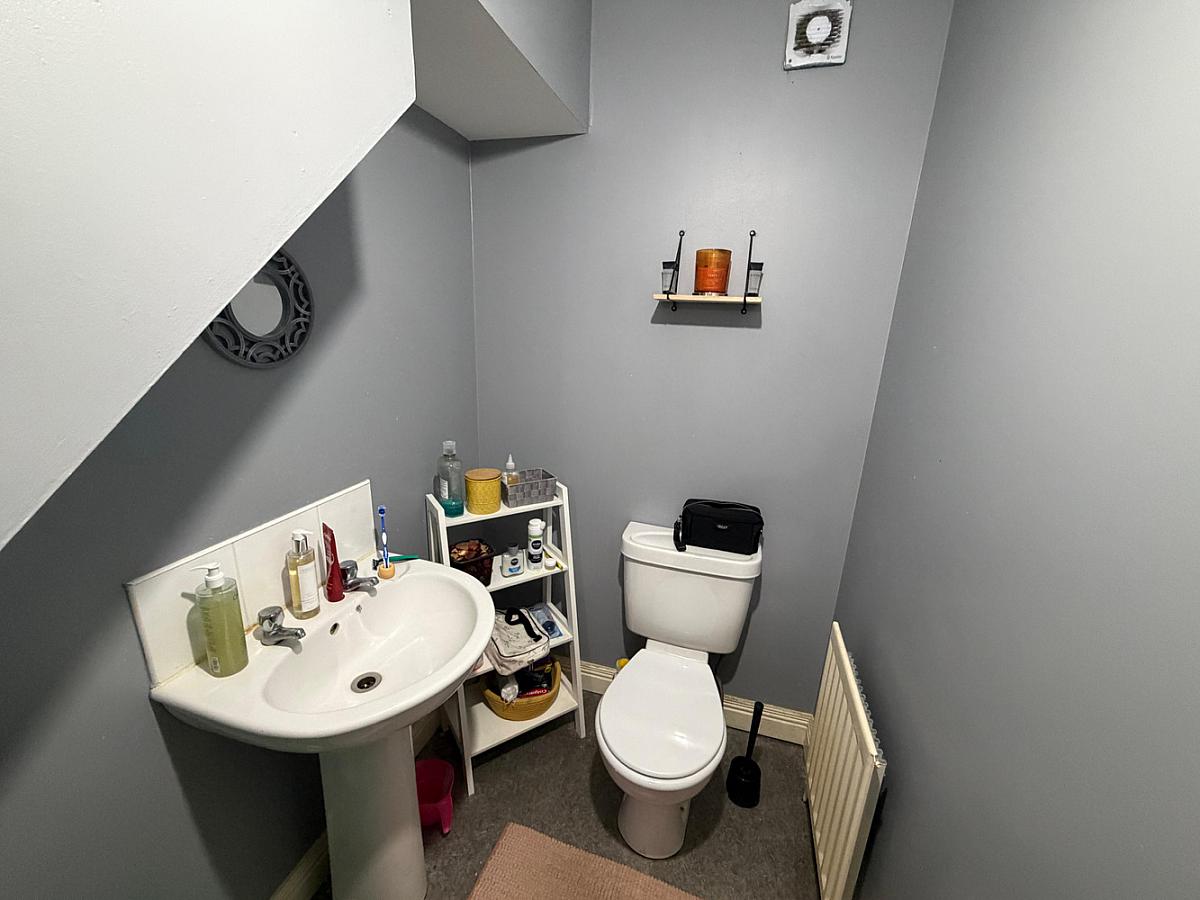 En-suite White 3 piece suite comprising WC, wash hand basin and walk in Redring shower. Extractor fan and tiled flooring.